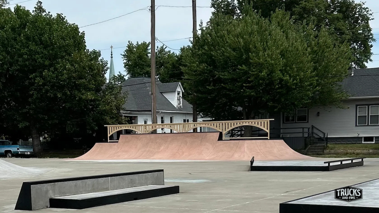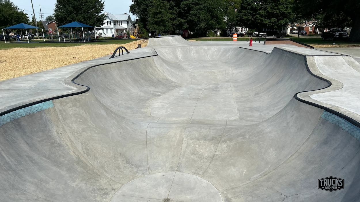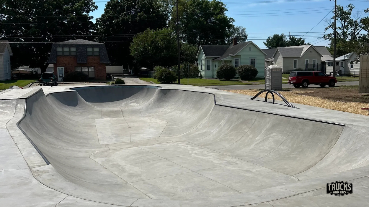 Vincennes, Indiana — where history runs deep and the Wabash River winds through town — just got a serious skate upgrade. Known for its historic landmarks woven into the local landscape, Vincennes now adds a revamped skatepark to its list of gems. Built on the bones of the original park, the renovation reuses the existing concrete slab to keep things feeling spacious and open. New features were added to maximize the footprint, including a performance stage and a bowl extension that takes the whole setup to the next level. At the heart of the design is a central jump island with multiple hips, surrounded by a flatland street section packed with combo boxes, rails, a bank to curb, and fun bank corner returns. A standout element is the hip-centric return wall, giving riders plenty of room to flow and generate speed. The new bowl extension brings even more heat: a 5-stair with hubba, a creative ledge extension, rainbow rail, and a long, flowing bowl. It starts with a roll-in, transitions into a mini ramp, cruises into straight walls, and finishes in a tight, whippy round wall pocket. To top it off, we added our signature custom stamping and Hunger Textured Coping to the round wall — dialing in that extra snap and style. Vincennes, your new park is ready — and it rips.