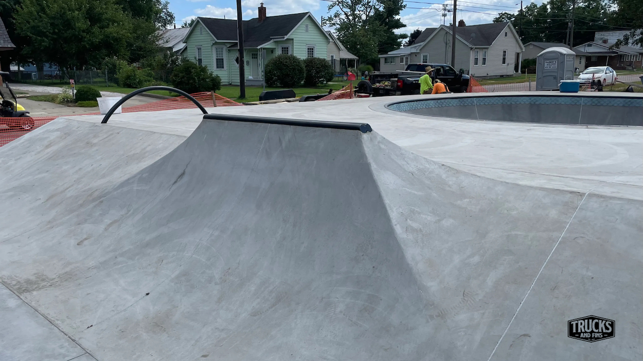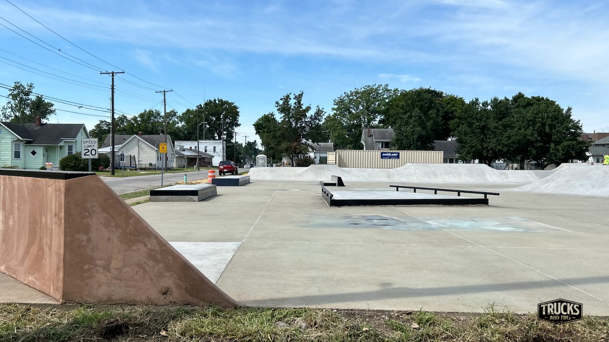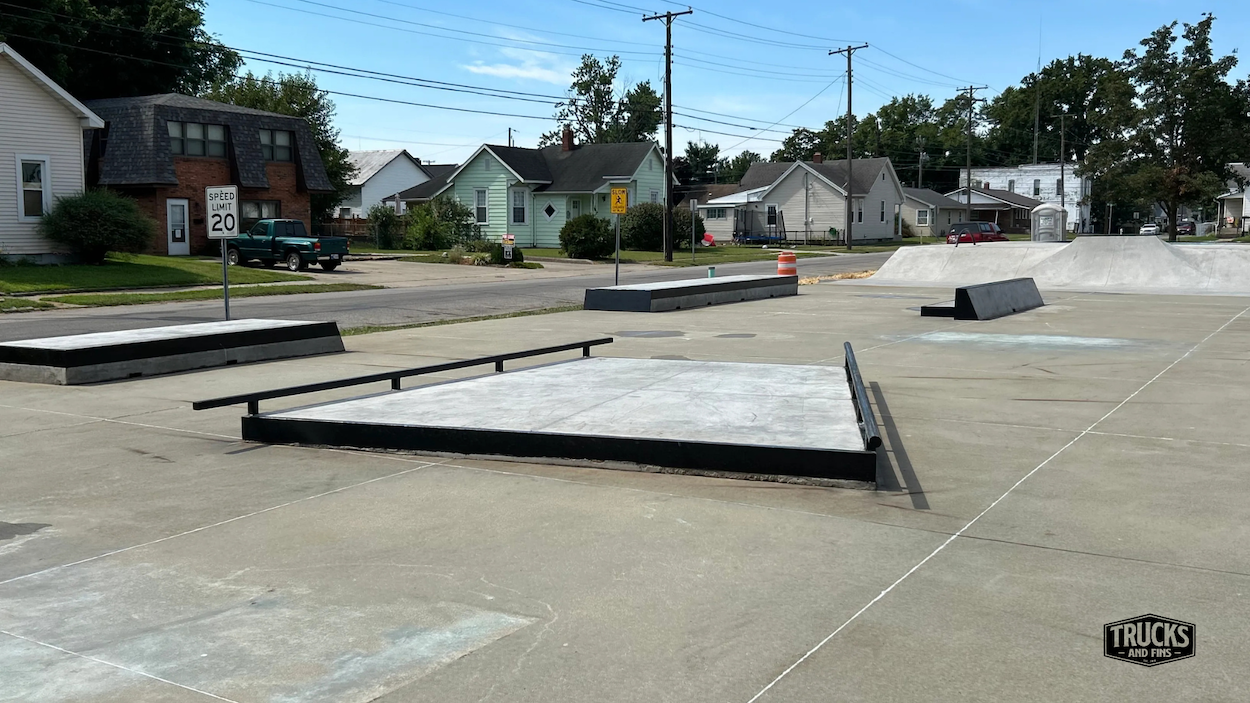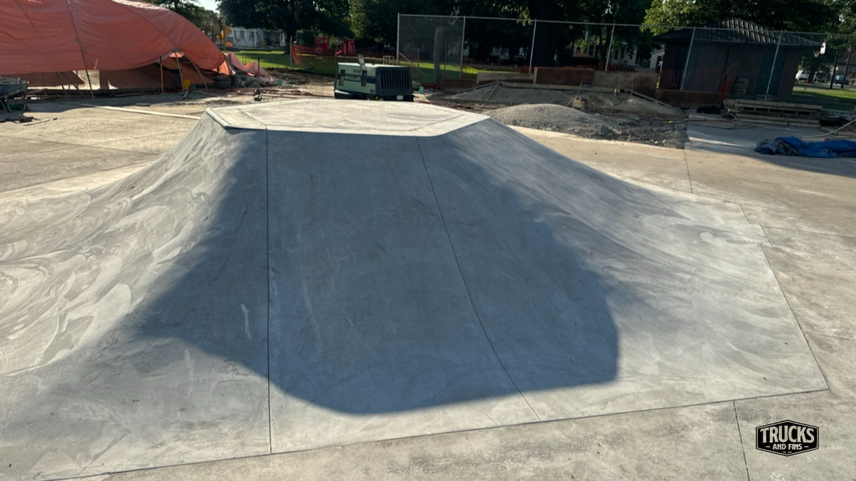 Vincennes, Indiana — where history runs deep and the Wabash River winds through town — just got a serious skate upgrade. Known for its historic landmarks woven into the local landscape, Vincennes now adds a revamped skatepark to its list of gems. Built on the bones of the original park, the renovation reuses the existing concrete slab to keep things feeling spacious and open. New features were added to maximize the footprint, including a performance stage and a bowl extension that takes the whole setup to the next level. At the heart of the design is a central jump island with multiple hips, surrounded by a flatland street section packed with combo boxes, rails, a bank to curb, and fun bank corner returns. A standout element is the hip-centric return wall, giving riders plenty of room to flow and generate speed. The new bowl extension brings even more heat: a 5-stair with hubba, a creative ledge extension, rainbow rail, and a long, flowing bowl. It starts with a roll-in, transitions into a mini ramp, cruises into straight walls, and finishes in a tight, whippy round wall pocket. To top it off, we added our signature custom stamping and Hunger Textured Coping to the round wall — dialing in that extra snap and style. Vincennes, your new park is ready — and it rips.