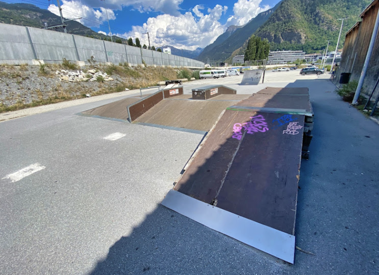 Visp skatepark is a DIY park with a nice variety of osbtacles.