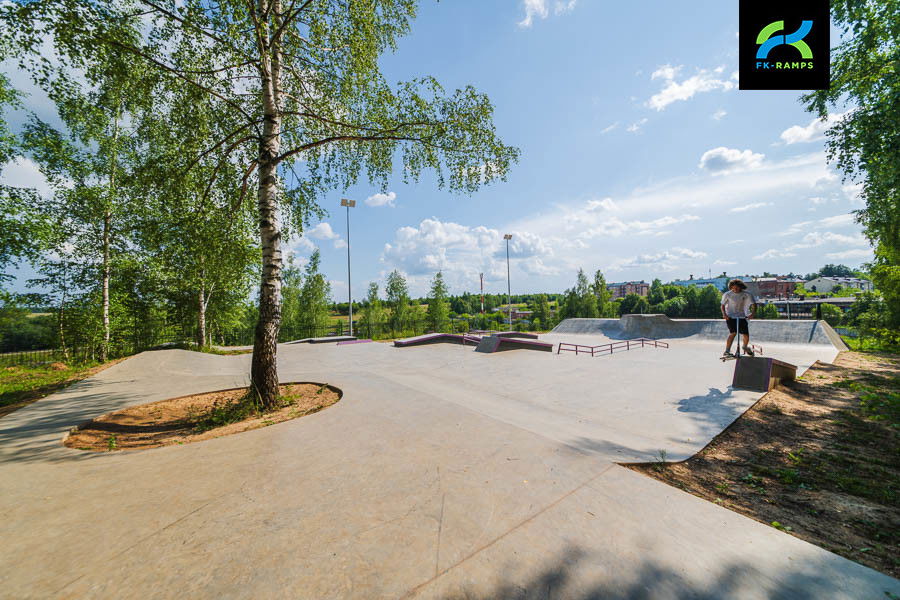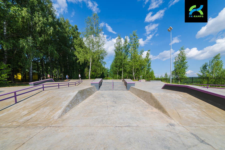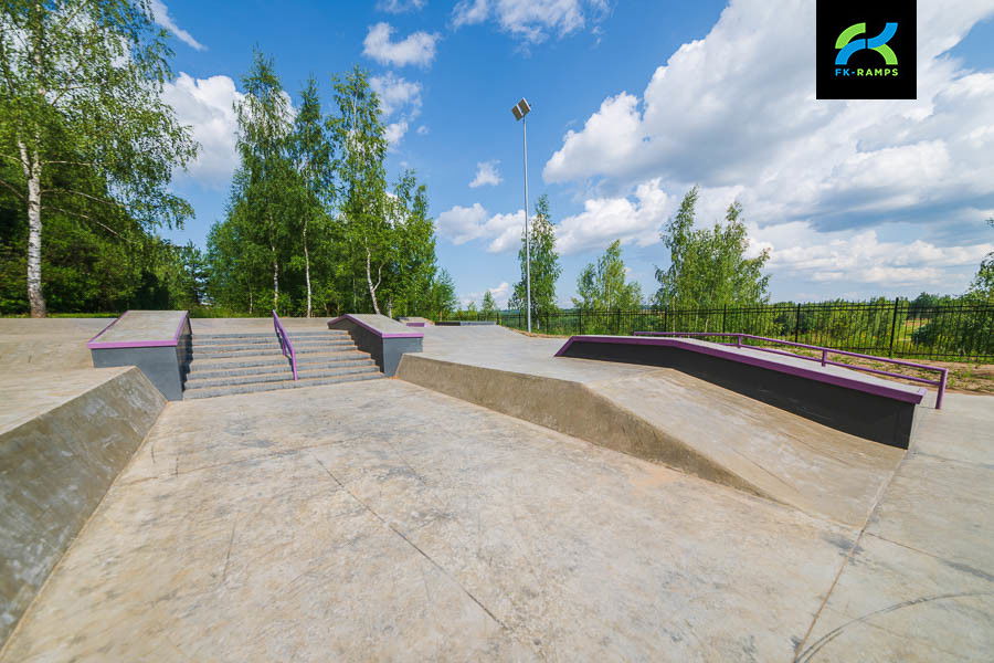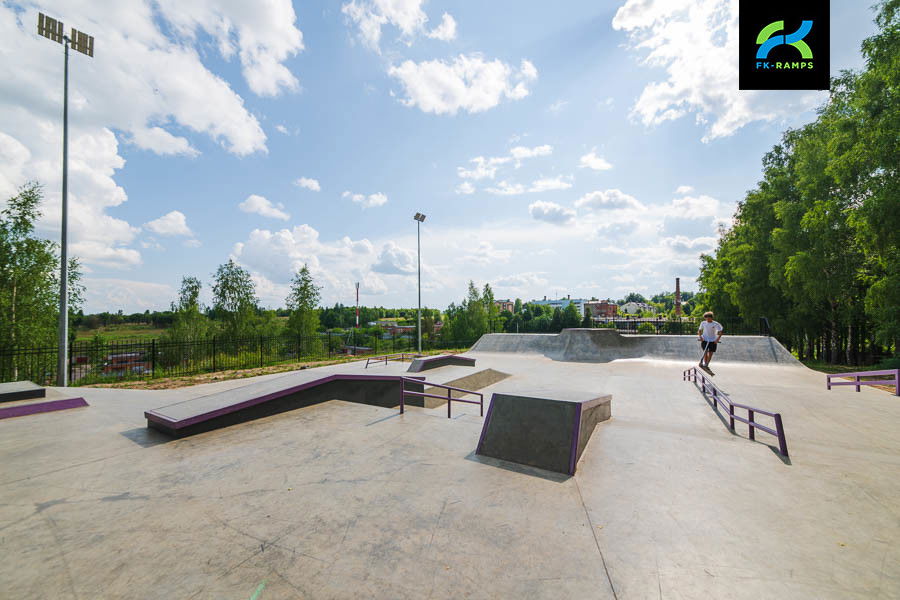 A new concrete skate park with an area of 770 m² was created in the city park of Volokolamsk, which has become an important element of the sports infrastructure for residents of the city and nearby areas. This facility is a modern concrete plaza specially designed for training and performing Street-style stunts. Equipping with a powerful lighting system allows you to use the park not only during the day, but also for evening training, which makes it convenient and accessible for athletes at any time of the day. The skatepark was built by FKRamps.