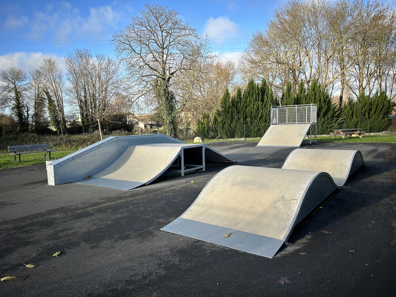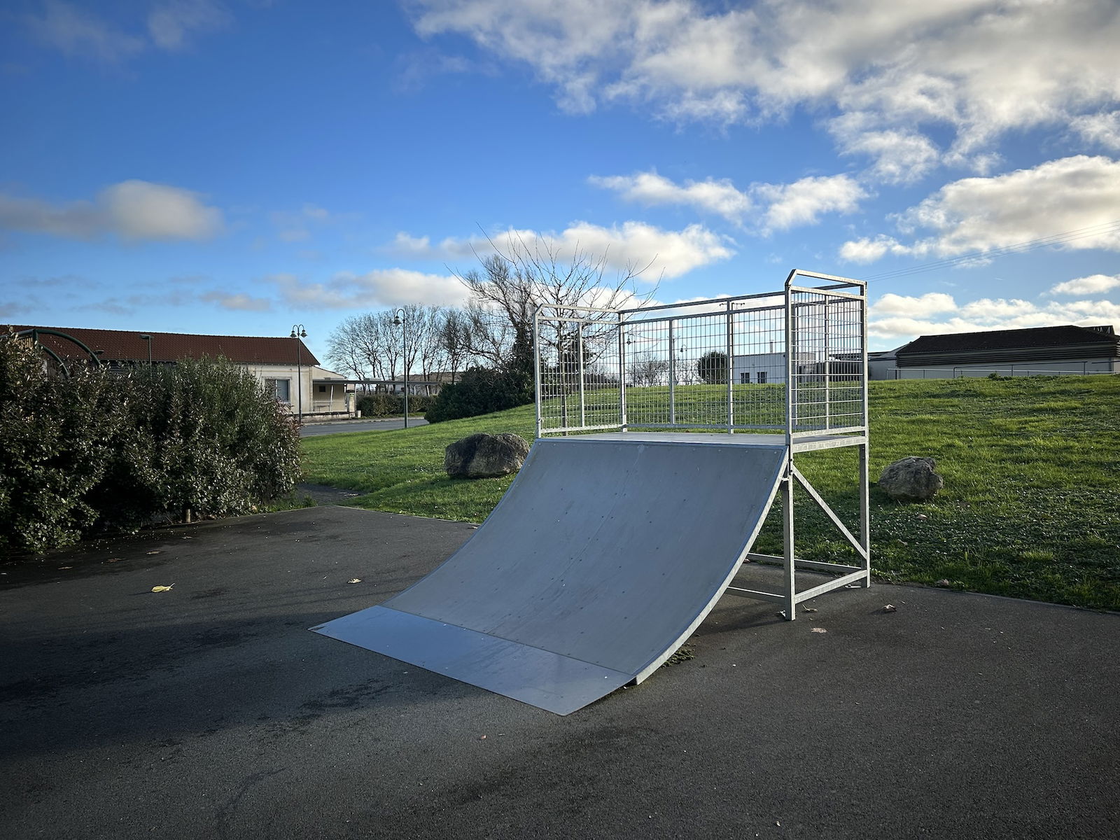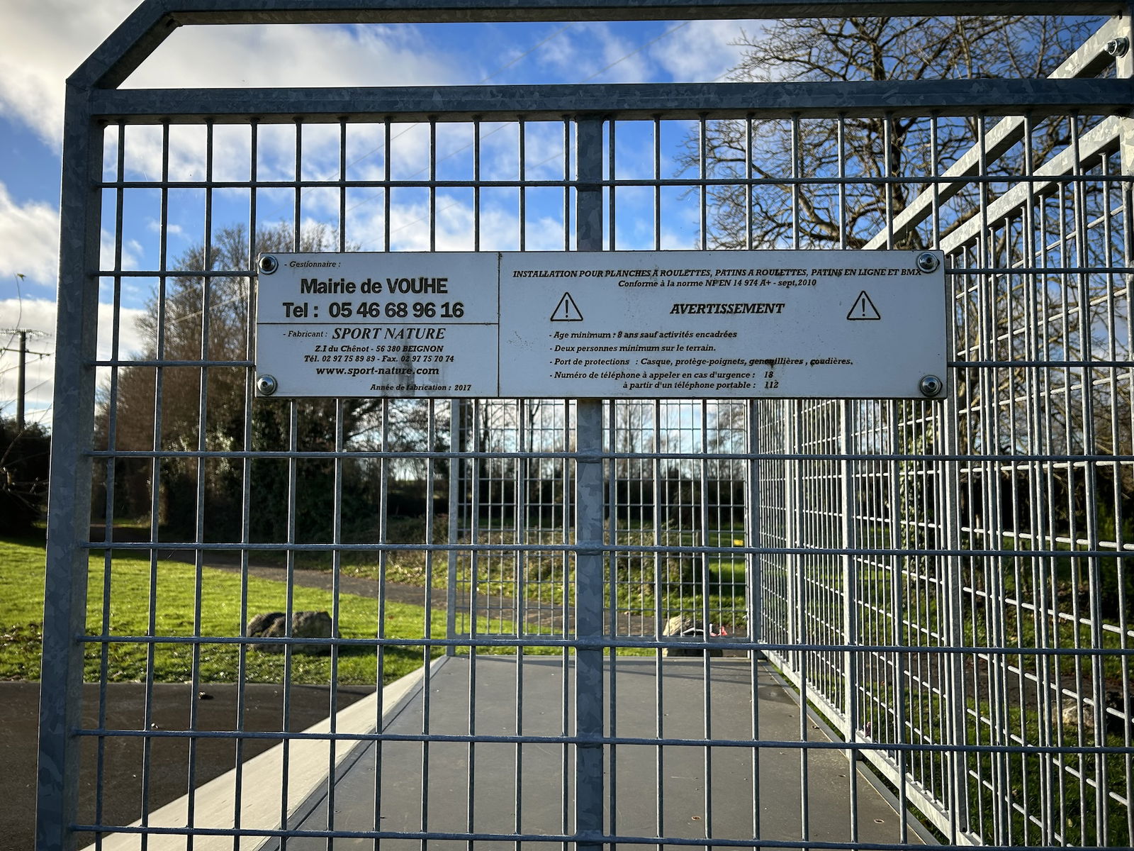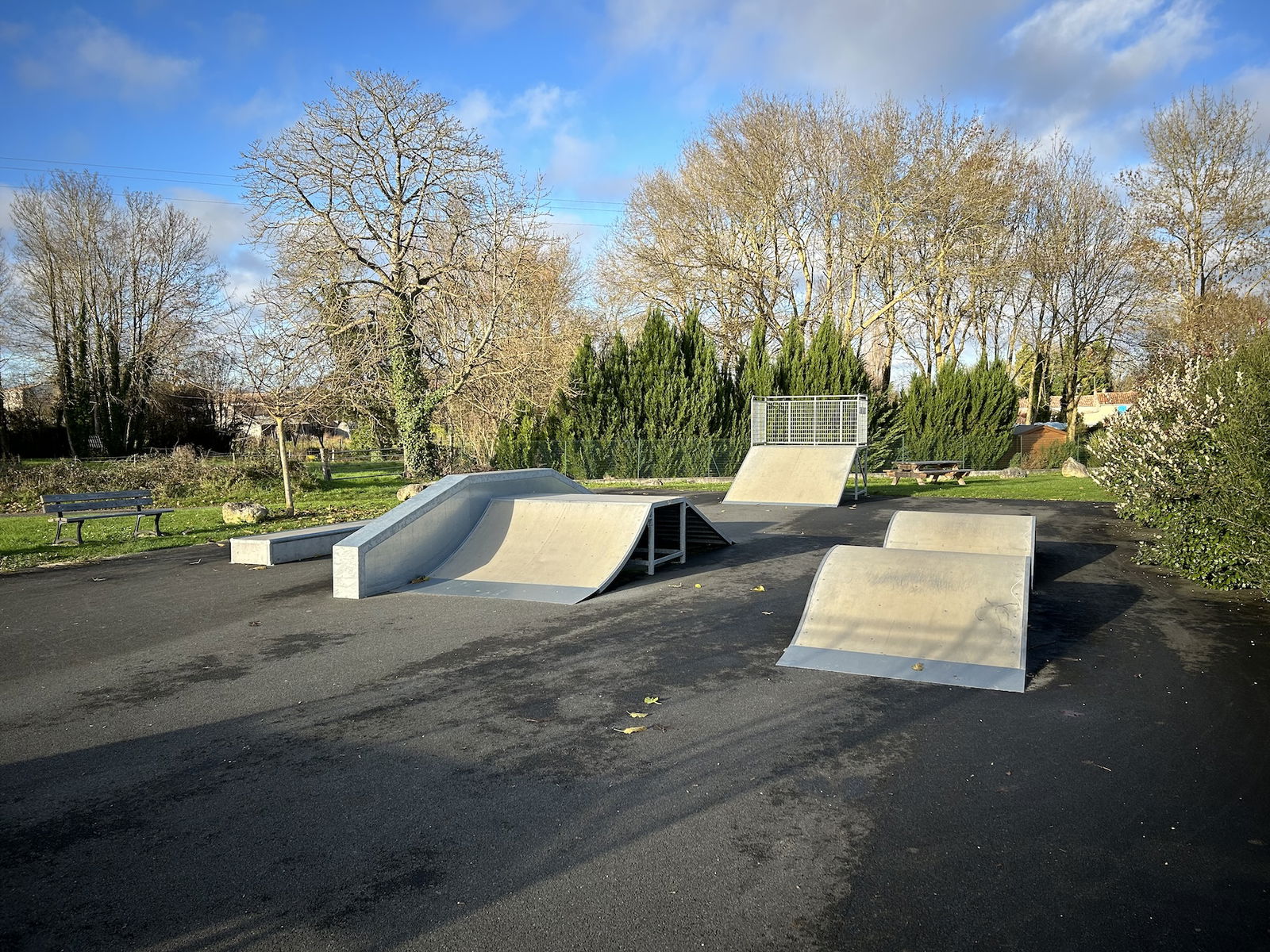 Vouhé skatepark is a small park with several basic skateboarding obstacles in a back and forth setup.