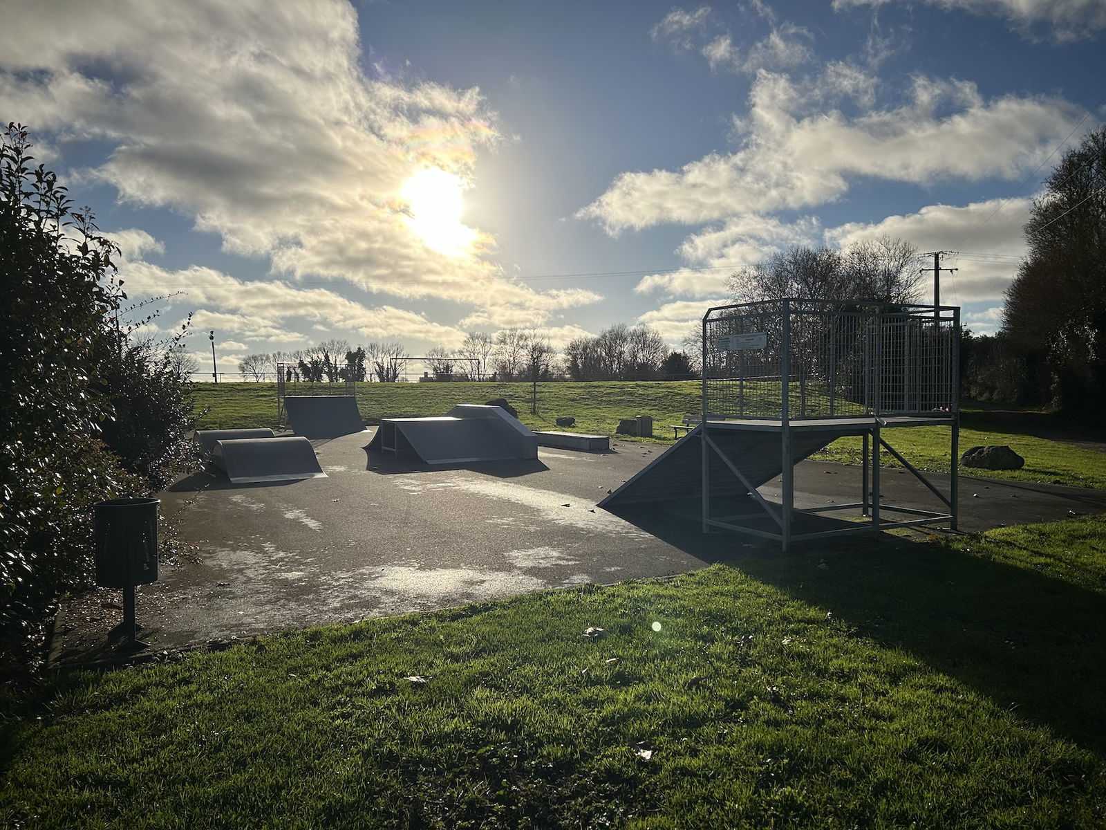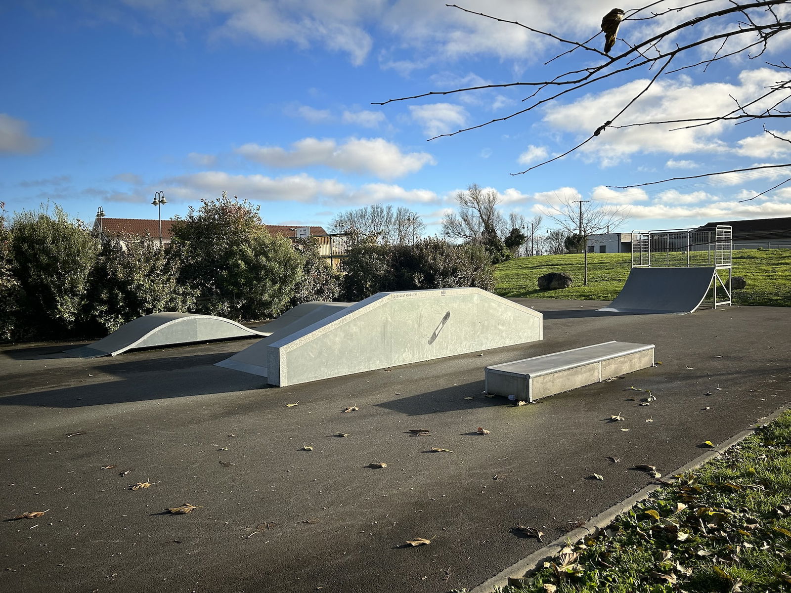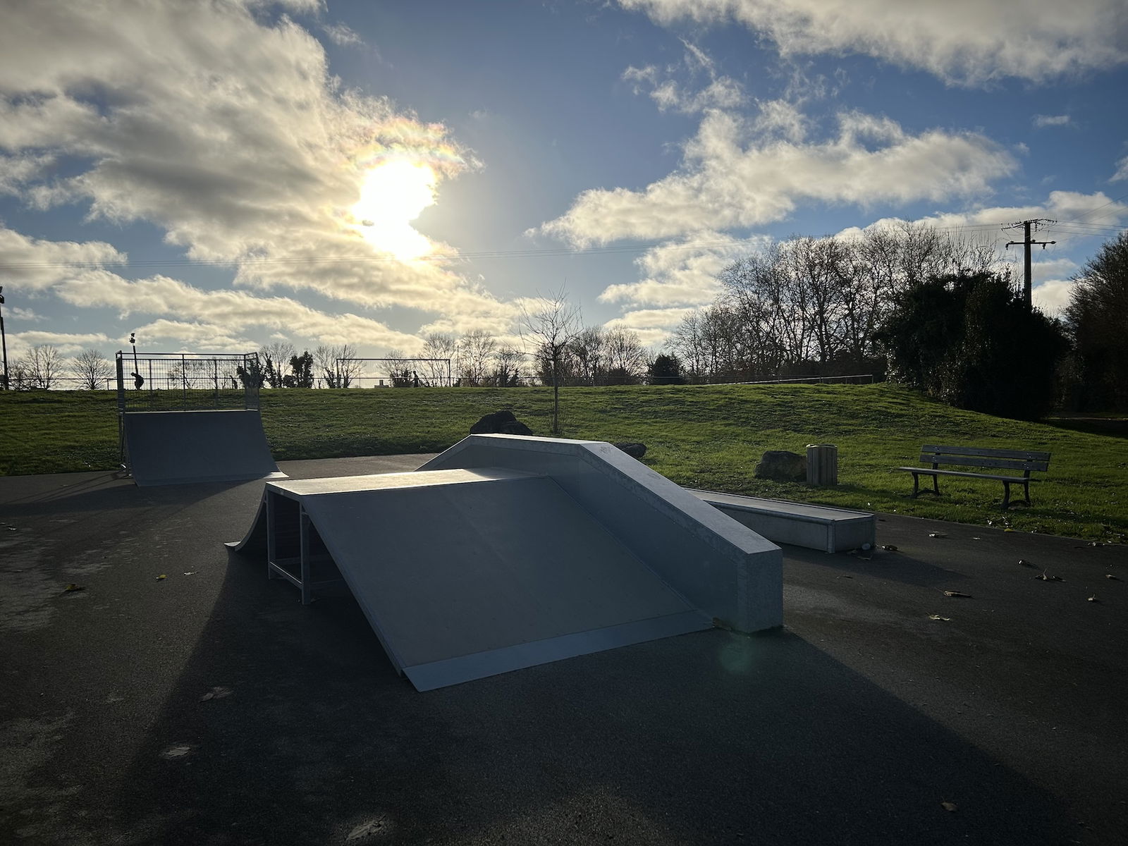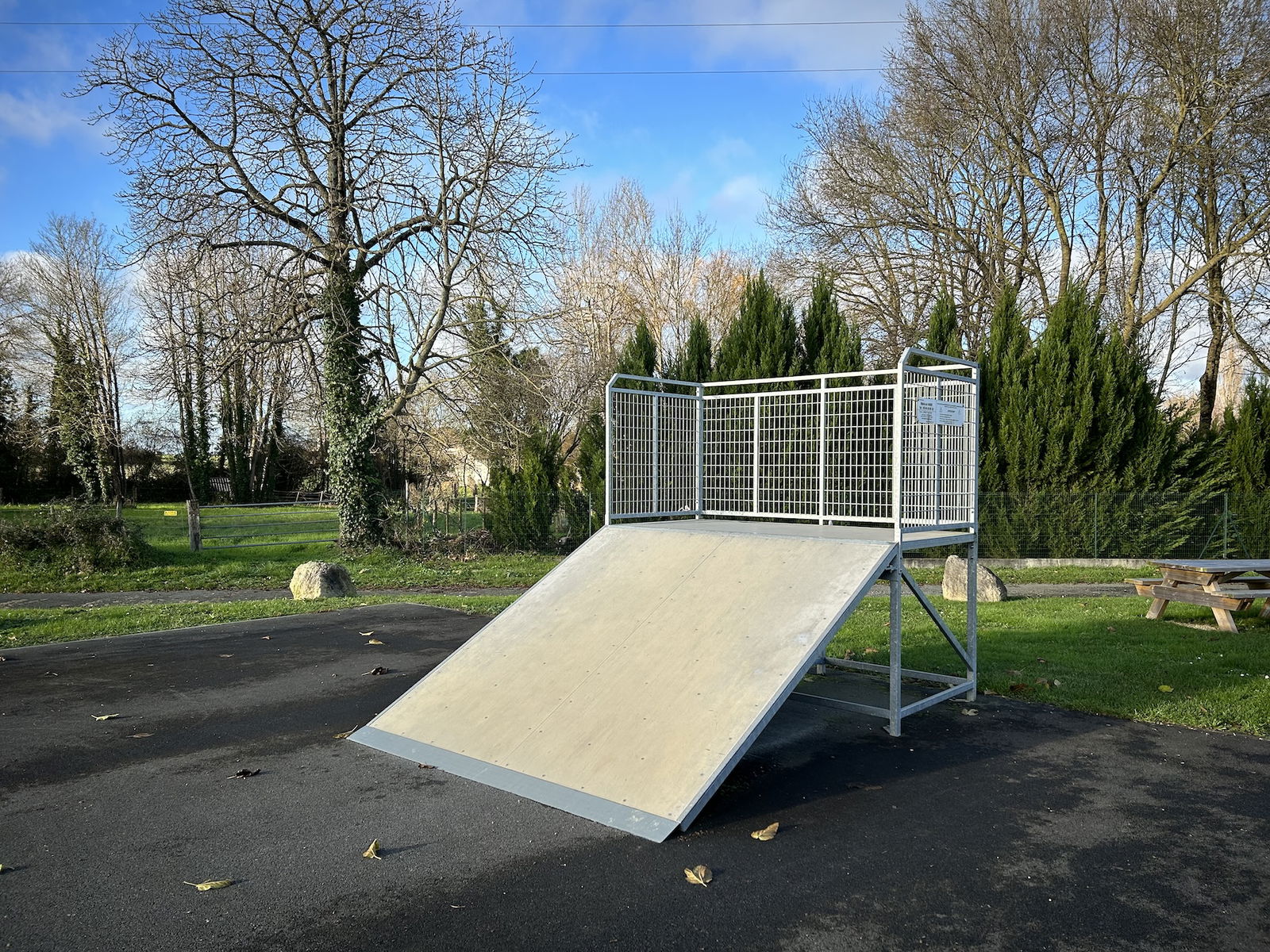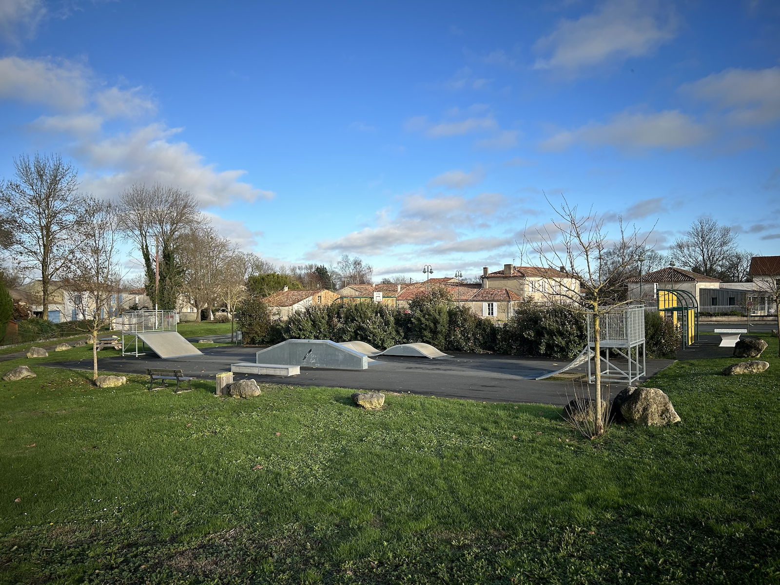 Vouhé skatepark is a small park with several basic skateboarding obstacles in a back and forth setup.