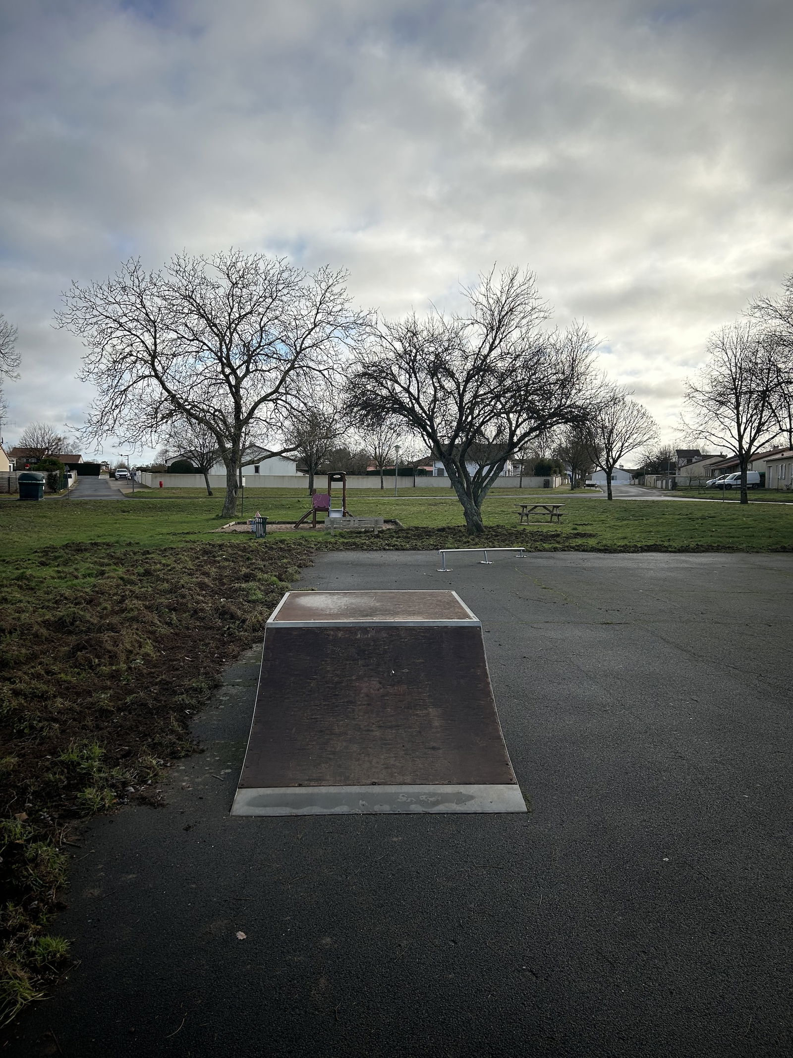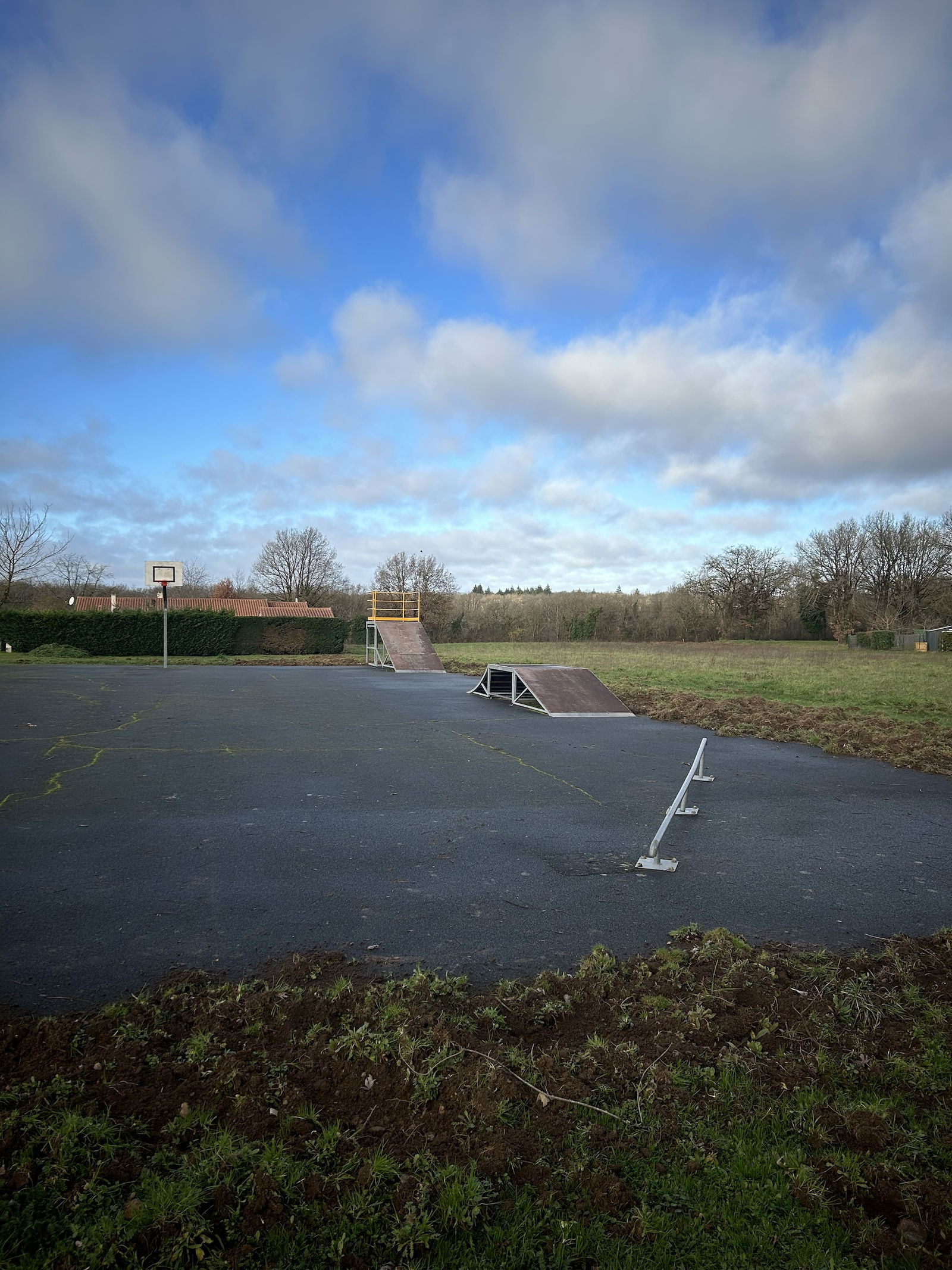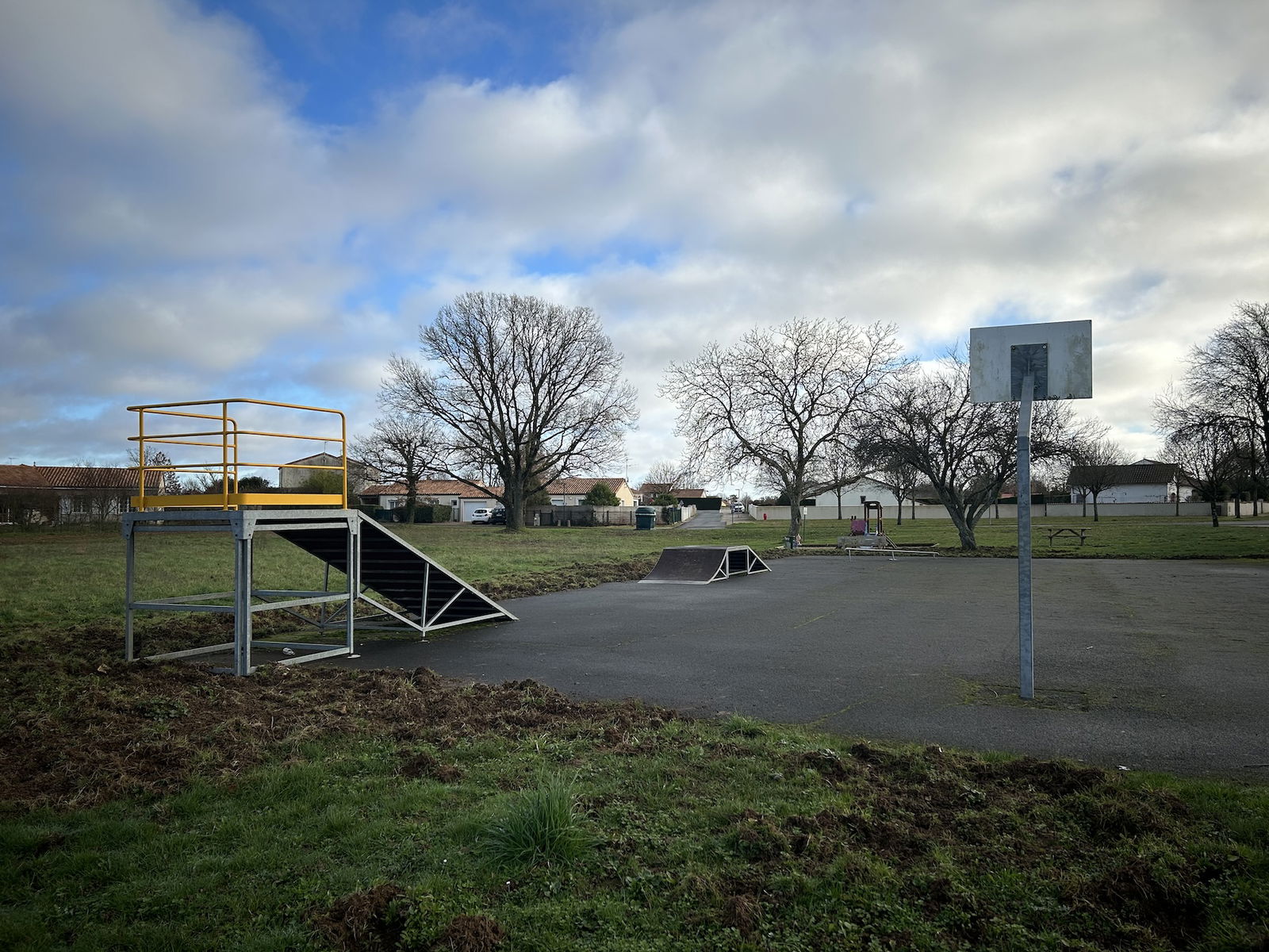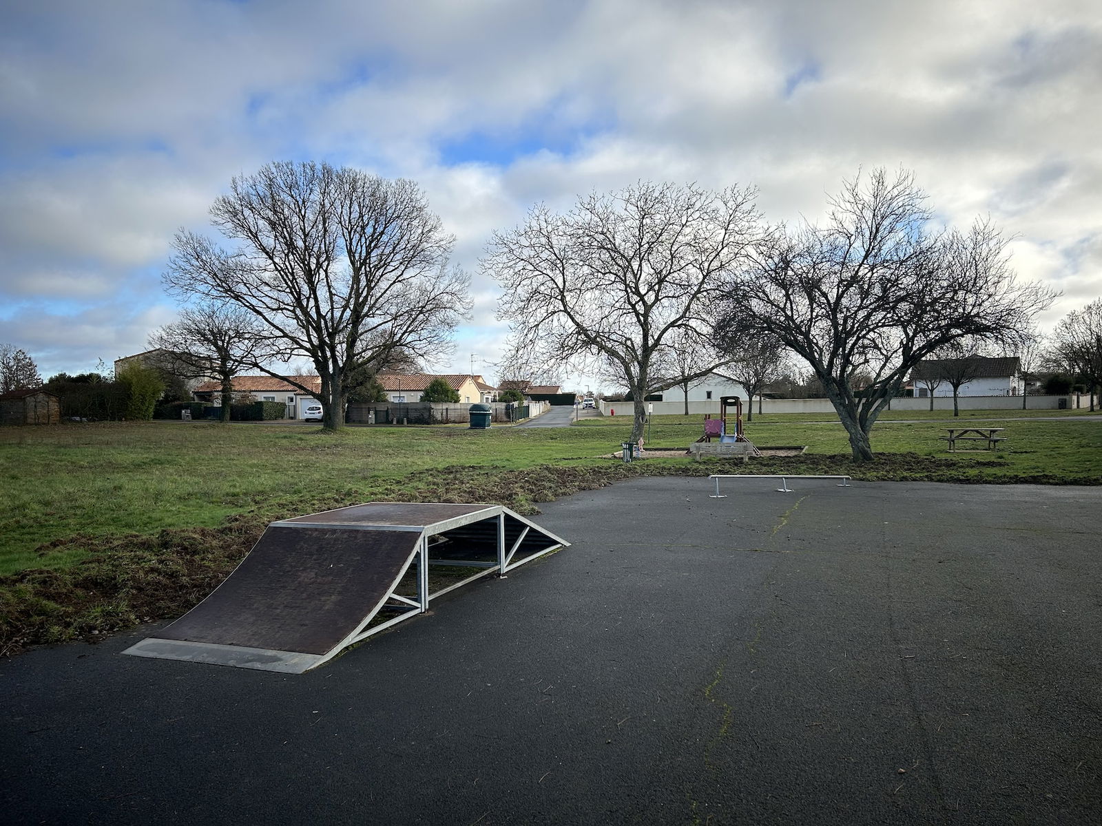 Vouneuil-sous-Biard skatepark is a small park with several basic skateboarding obstacles in a back and forth setup.