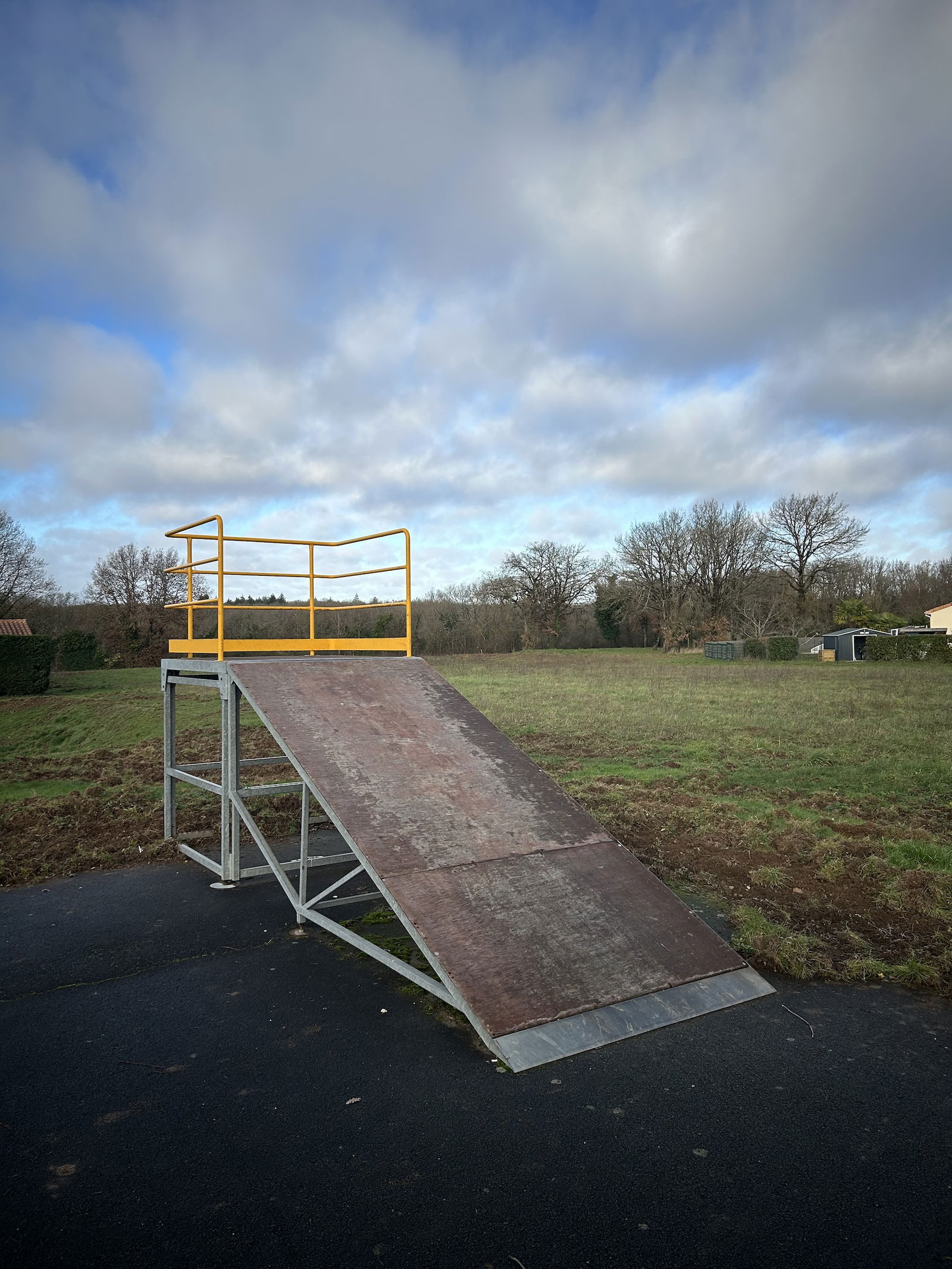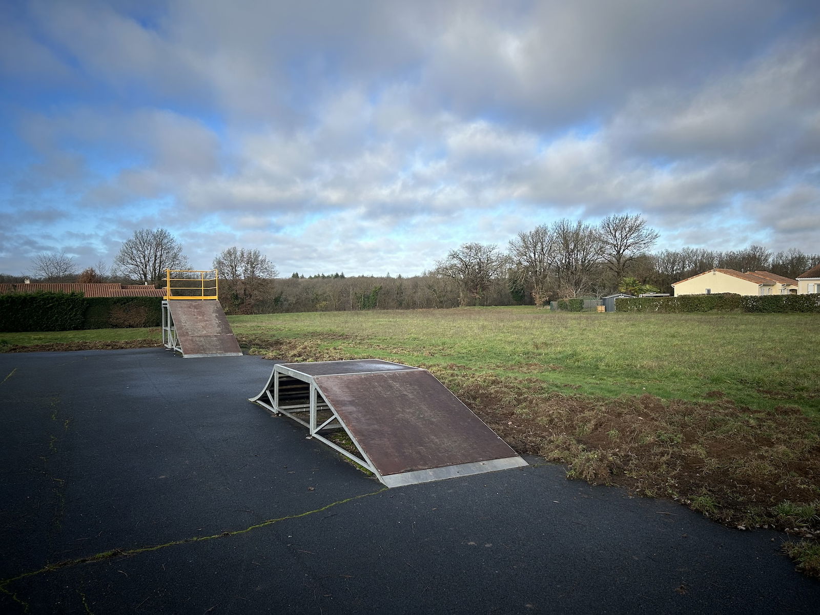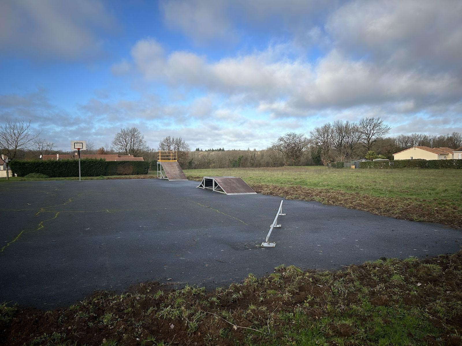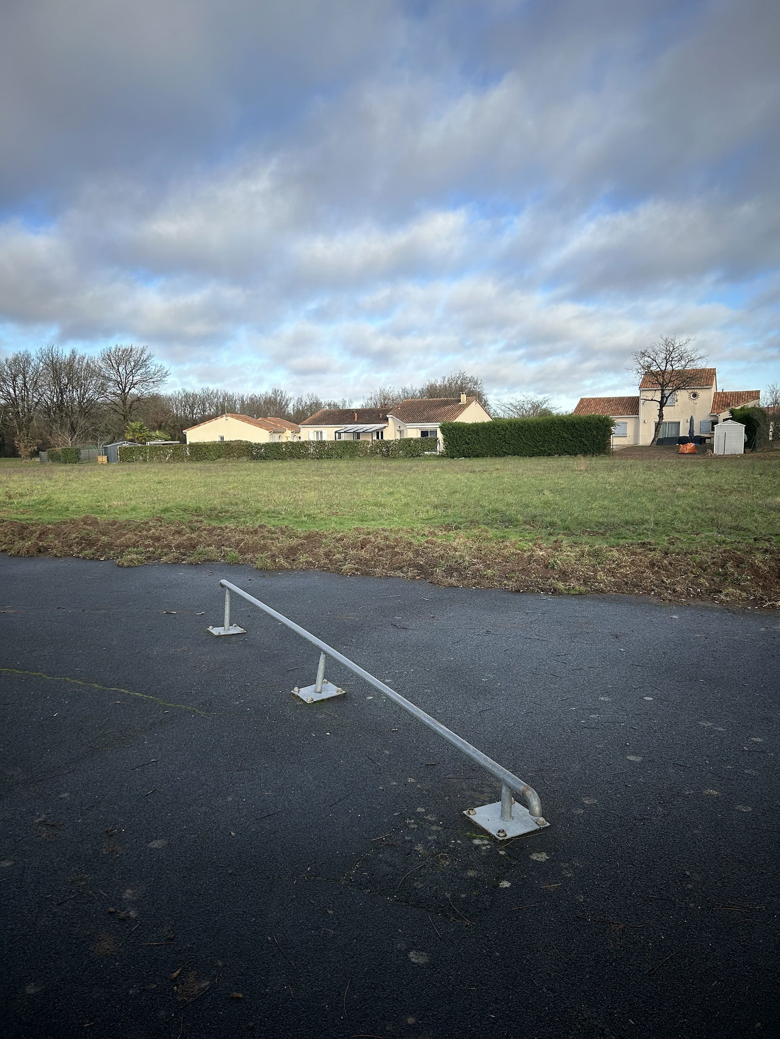 Vouneuil-sous-Biard skatepark is a small park with several basic skateboarding obstacles in a back and forth setup.