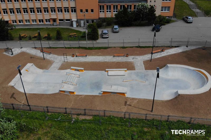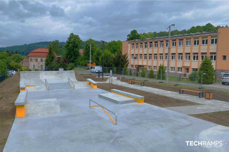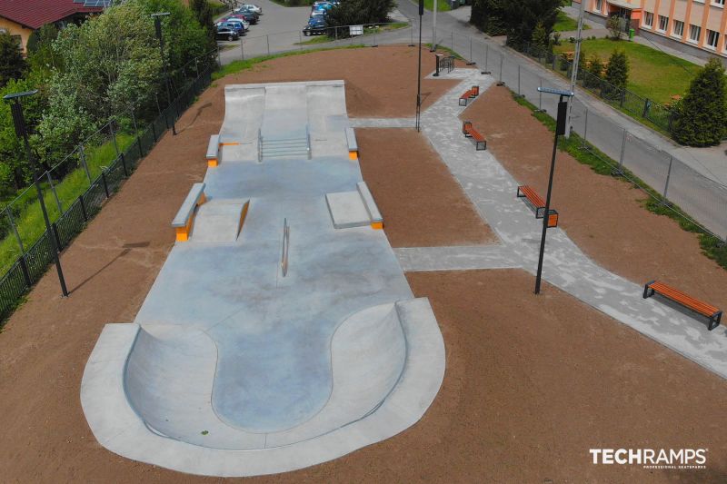 Walim skatepark is a 235 m2 concrete park built by Techramps in 2022.