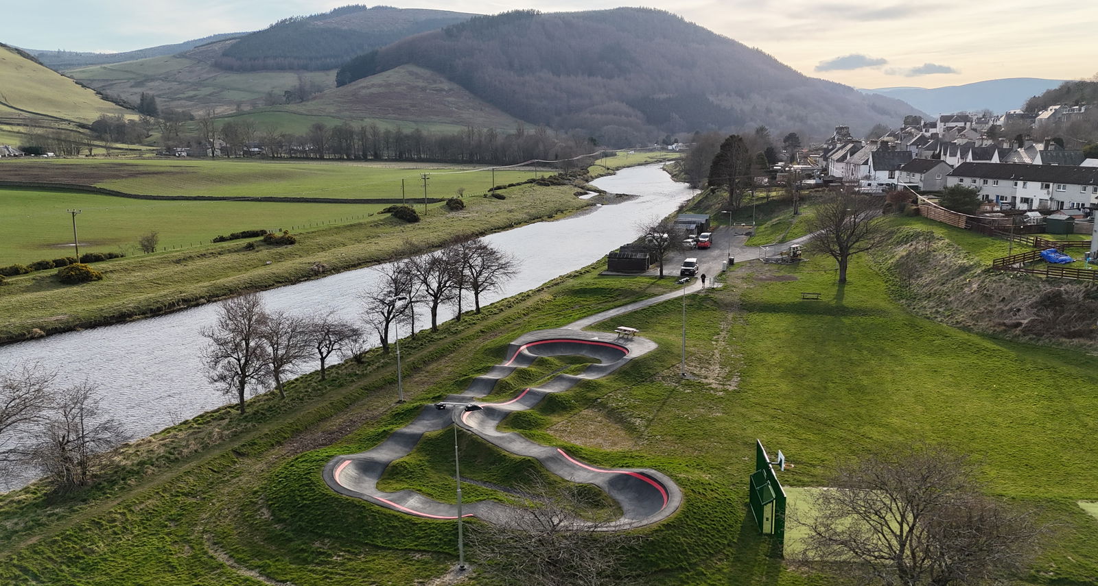 The Walkerburn Pumptrack, located in Walkerburn, Scotland, is a modern facility designed to cater to various wheeled sports enthusiasts, including cyclists, skateboarders, and rollerbladers. The track officially opened in August 2024 and was built by VelosolutionsUK. The pumptrack boasts a 110-meter asphalt circuit.