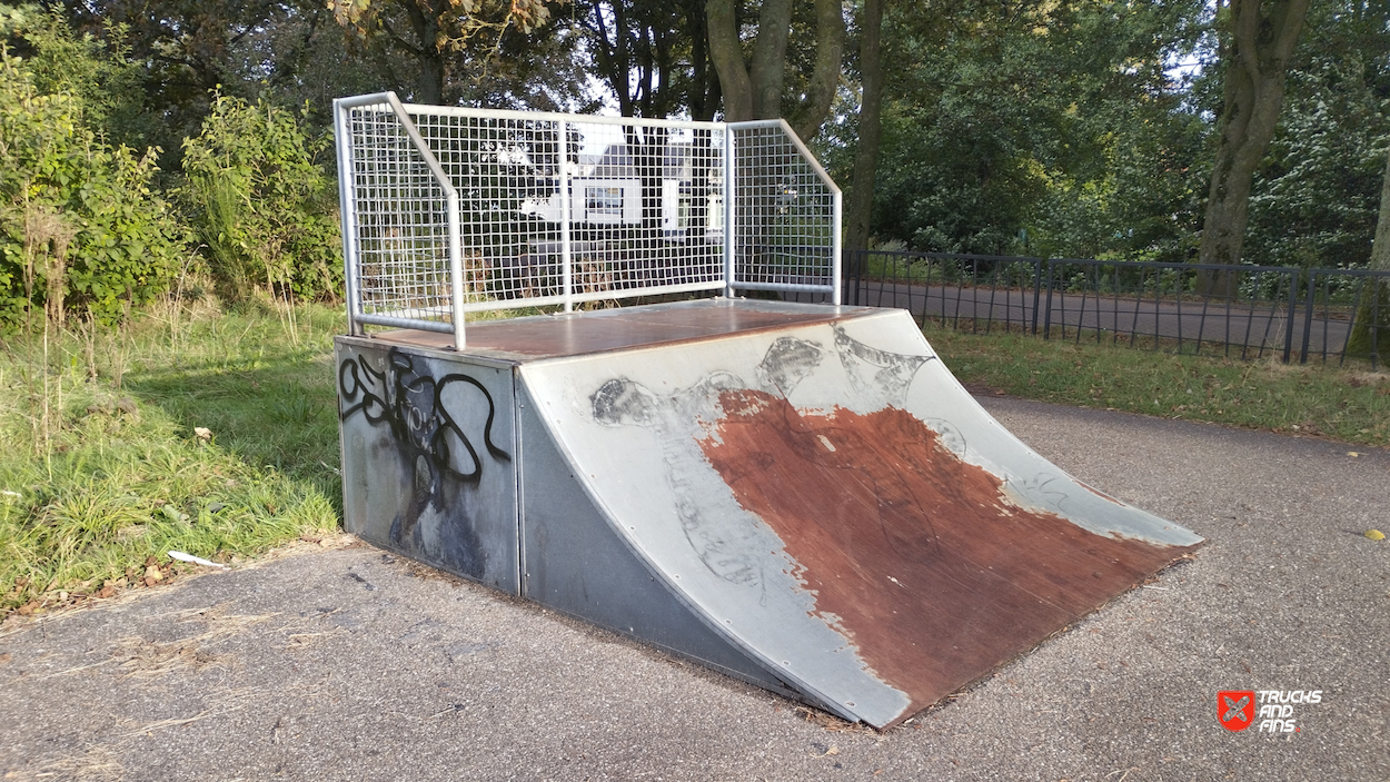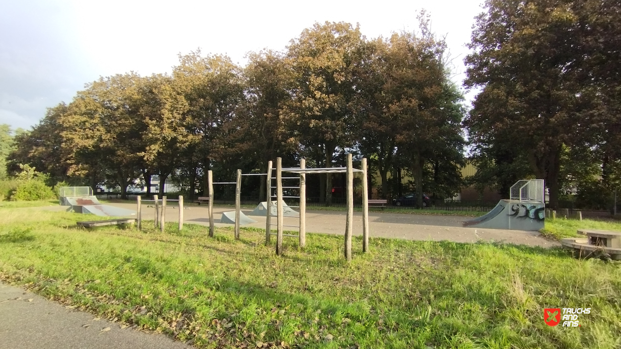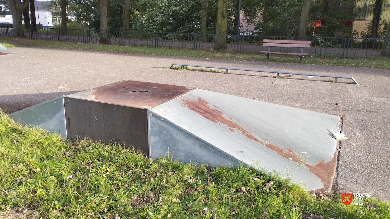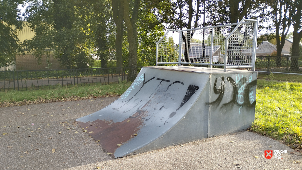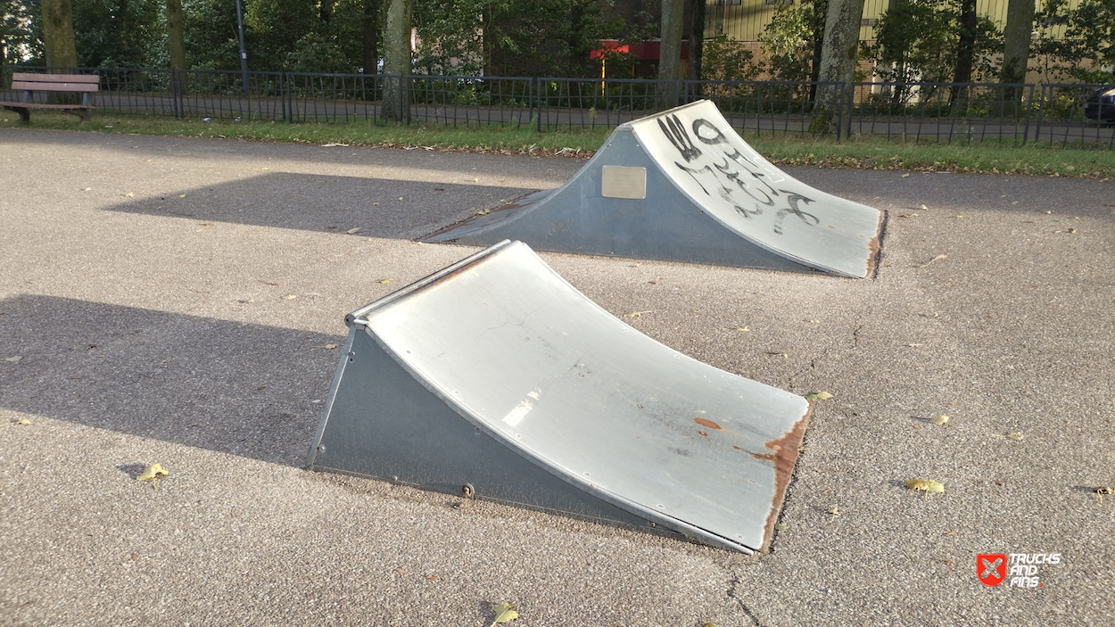 Waspik skatepark is a small park with several basic skateboarding obstacles in a back and forth setup.