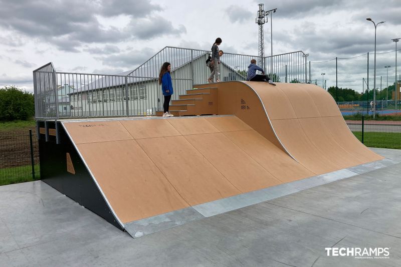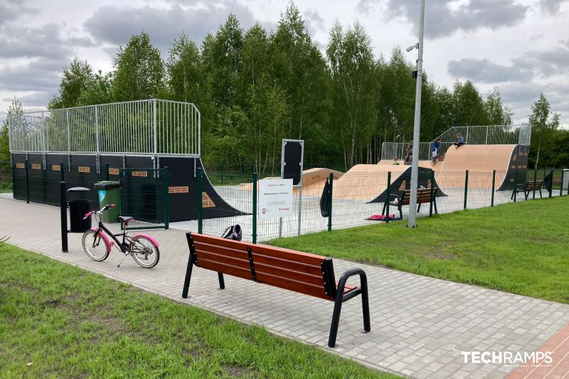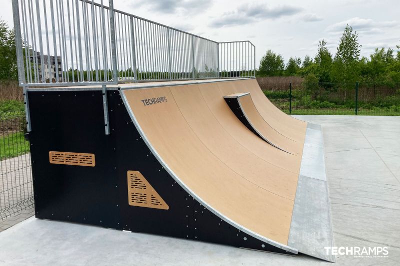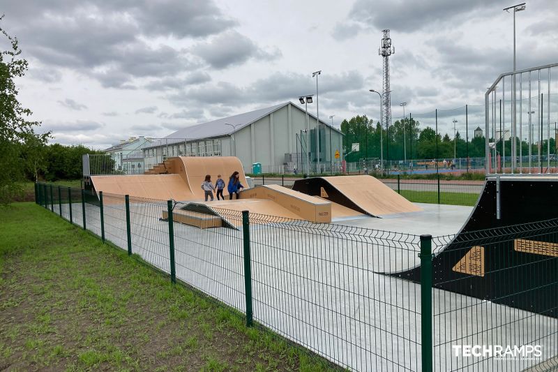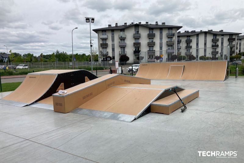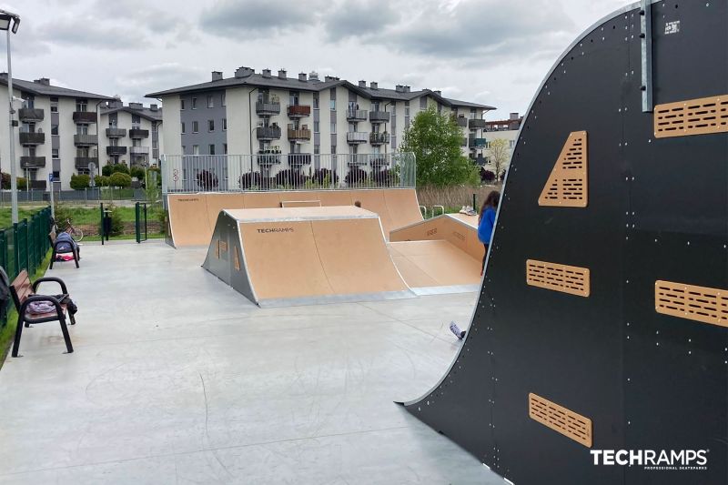 Wieliszew skatepark is a small park with a miniramp and several basic obstacles in a back and forth setup. The skatepark was built by Techramps.