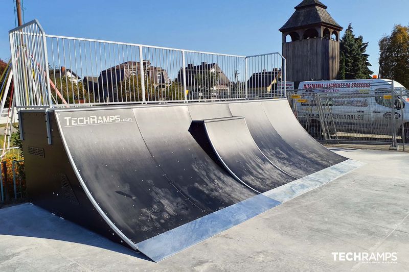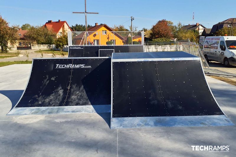 Świerże Górne skatepark is a small park with several basic obstacles in a back and forth setup. The skatepark was built by Techramps.