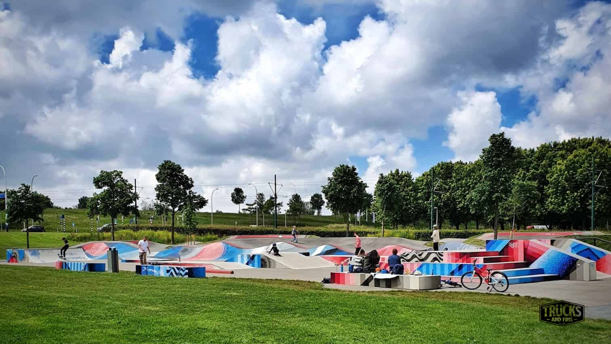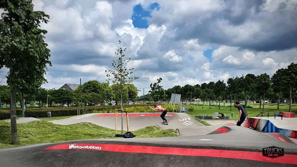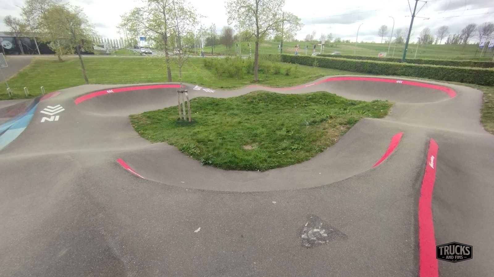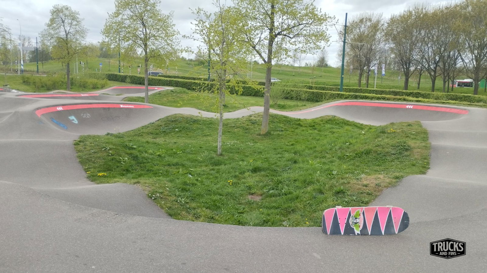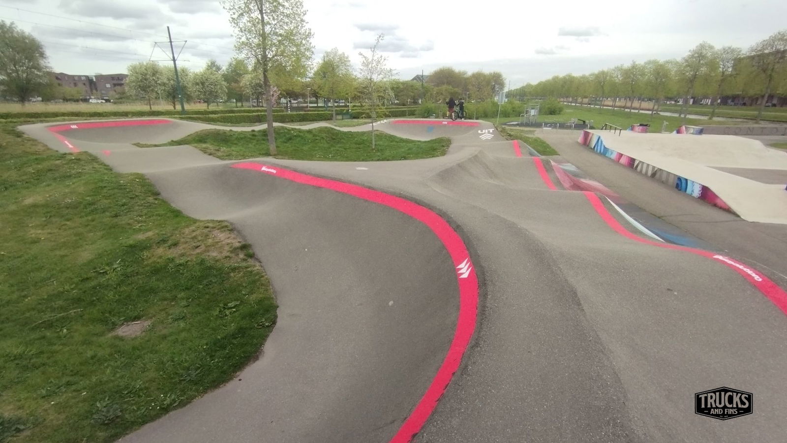 Fun pumptrack with a good design with good bumps and corners and two loops. Skatepark is quite rough and wide so maybe more for bmx then for skates.