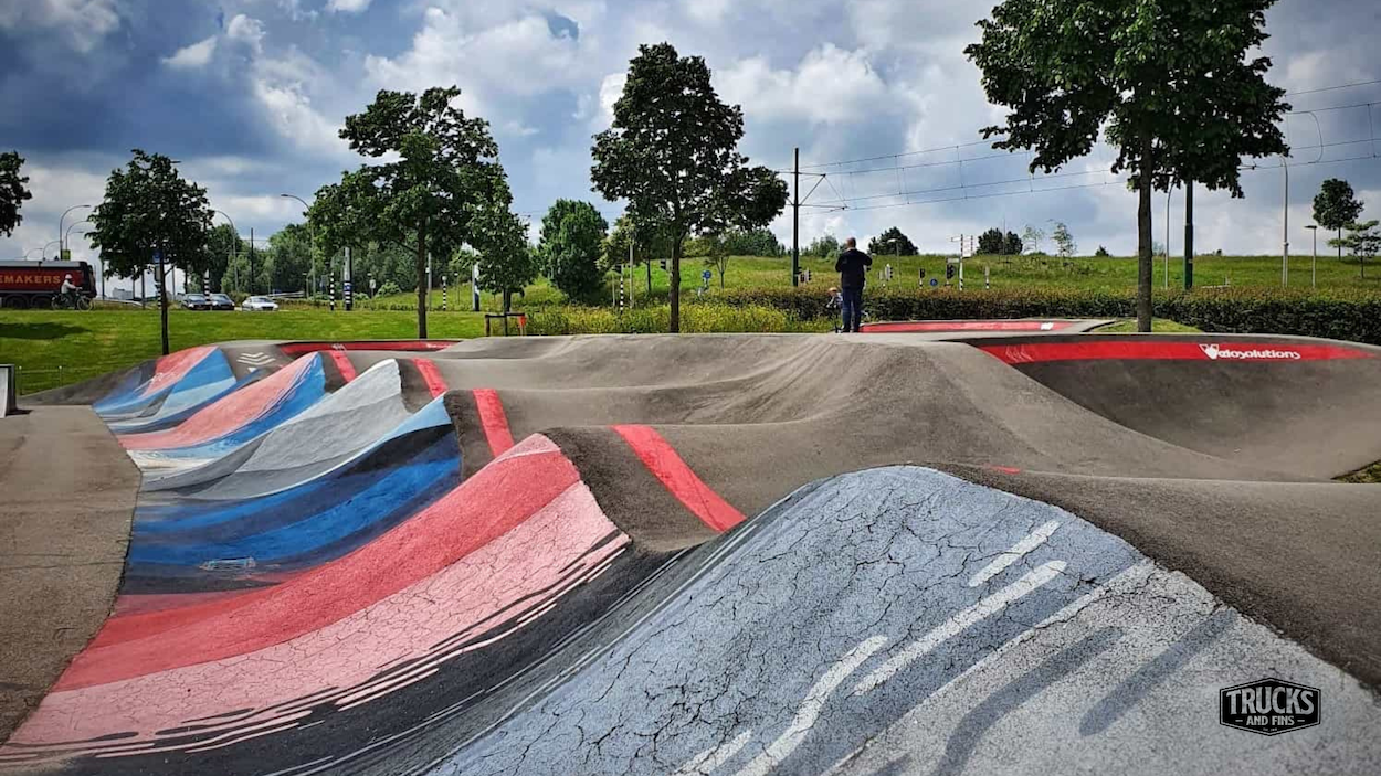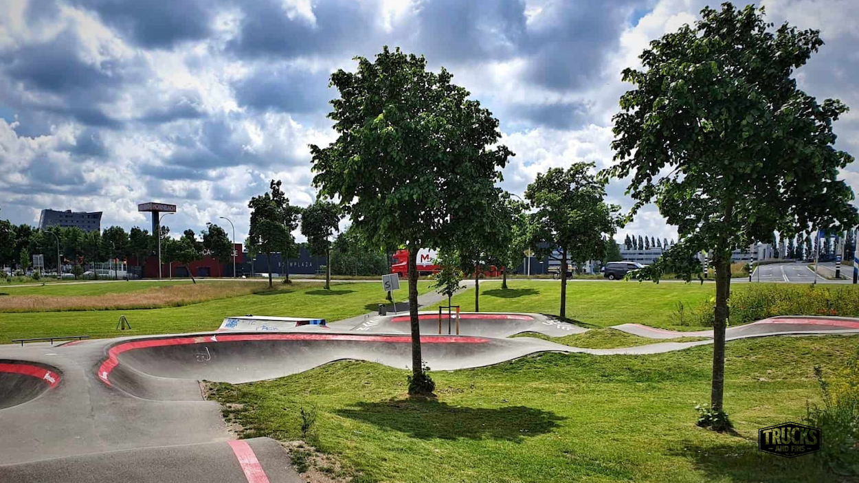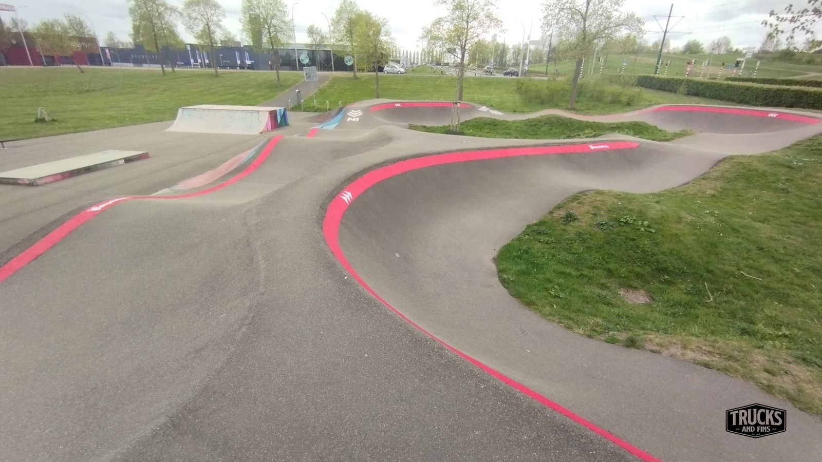 The Ypenburg Pumptrack, located in The Hague's Ypenburg district, is a 180-meter-long asphalt track designed for skateboards, scooters, and inline skates. The pumptrack was built by Velosolutions Netherlands. The track is located adjacent to a concrete skate park, offering a comprehensive facility for various wheeled sports.