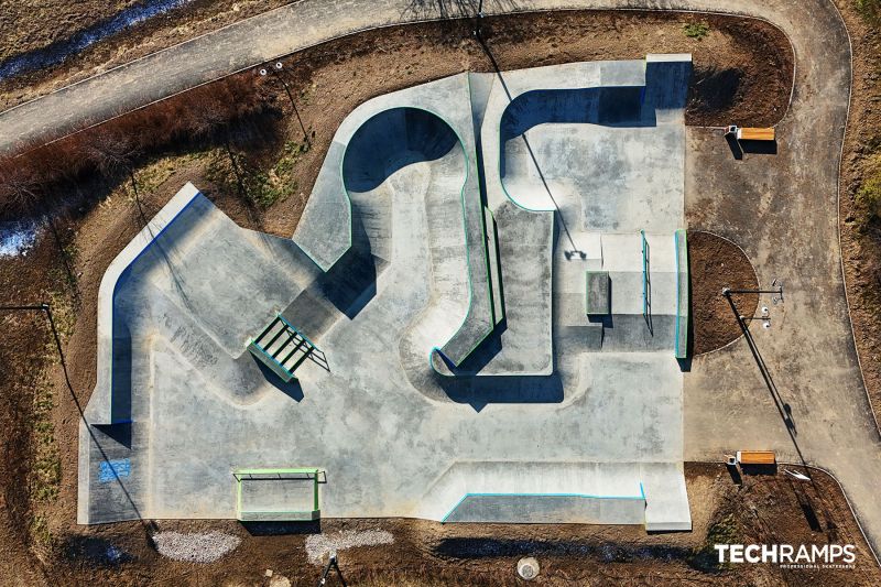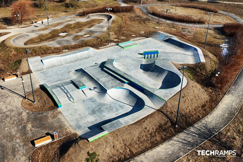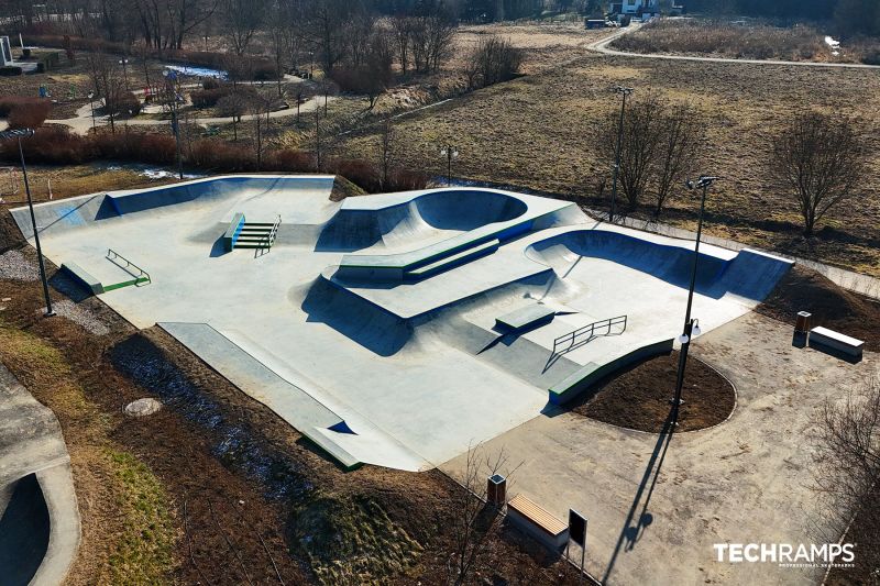 Zabierzów skatepark is a 735 square meter concrete park built by Techramps in 2024.