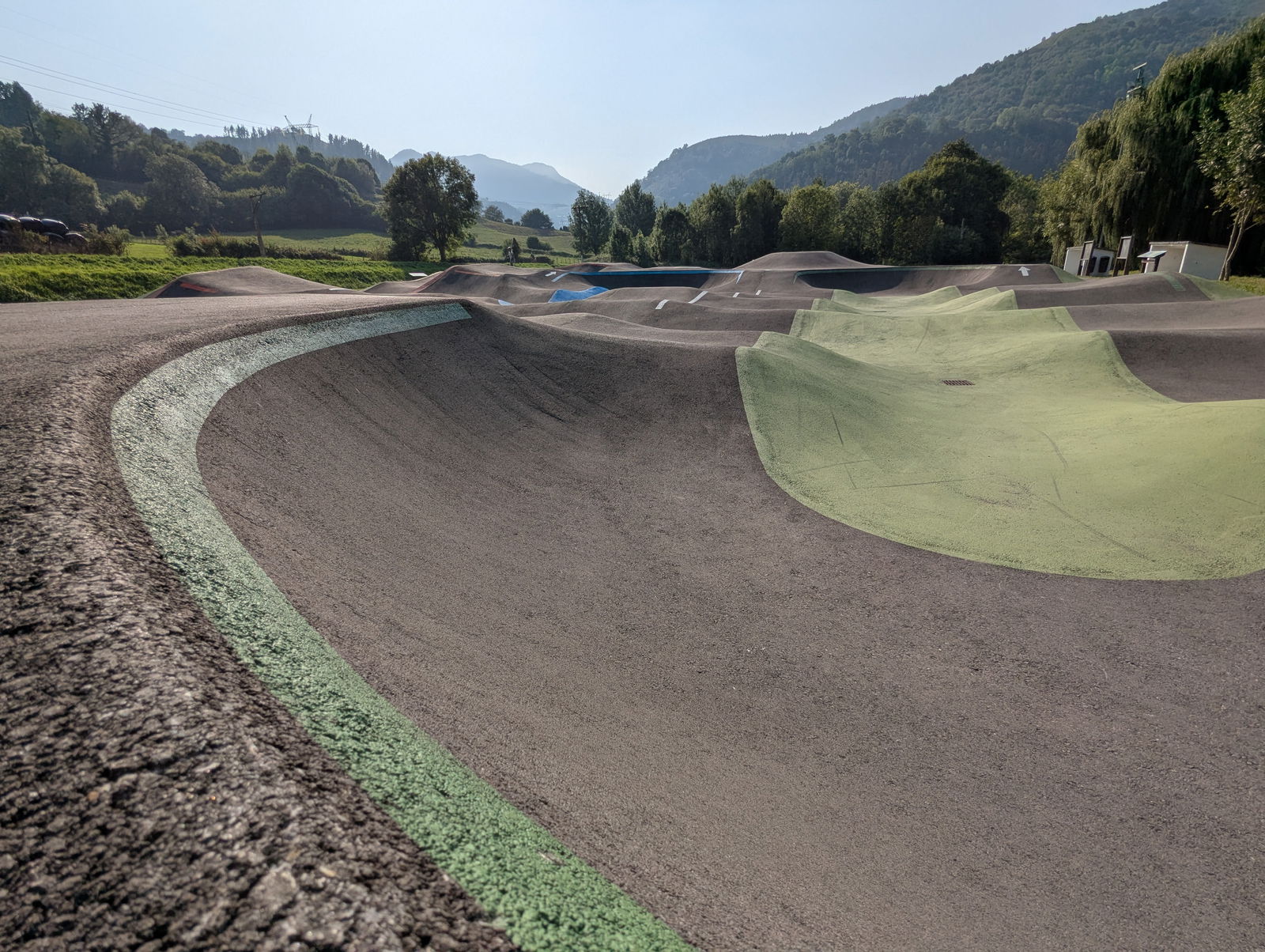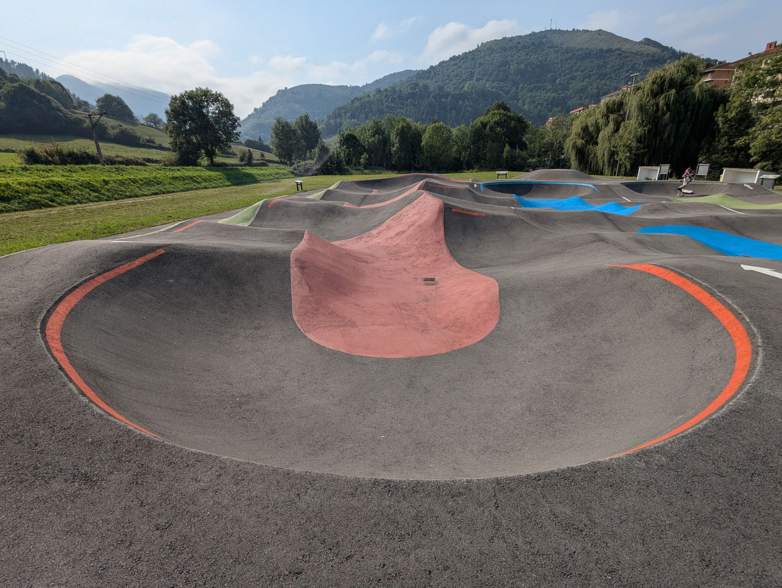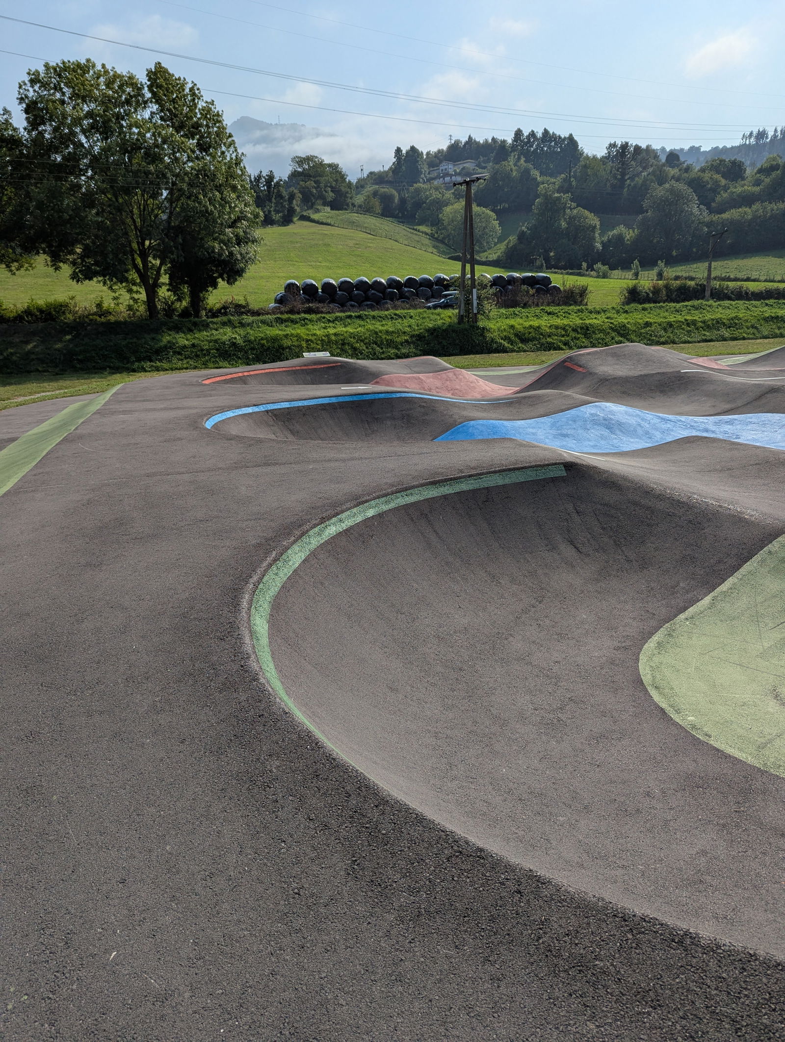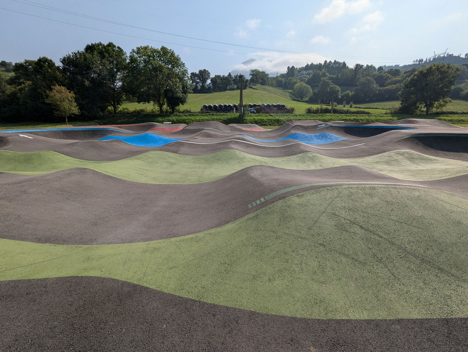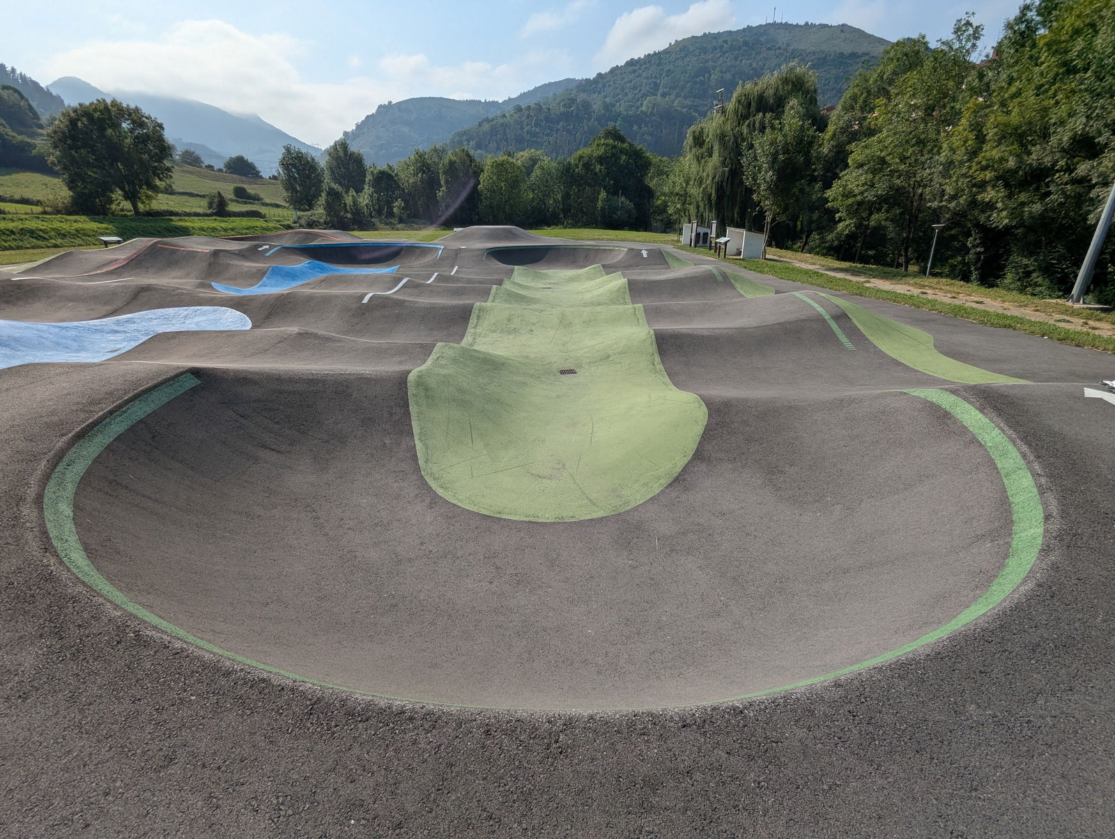 Zestoa pumptrack is an asphalt bike and skateboard track built by Poolsport. It contains 3 separate tracks for different skill levels.