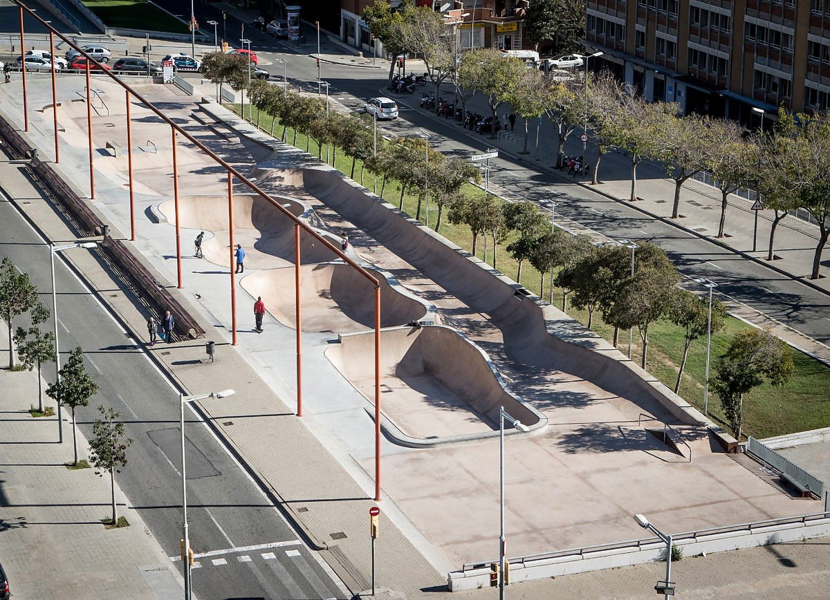 Another spot you can't miss in Spain, is Guineueta Canyelles skatepark in Barcelona. The skatepark was built by IOSkateparks and Ramps and Vulcanoskateparks and features three bowls, a long snake run, and a street area.