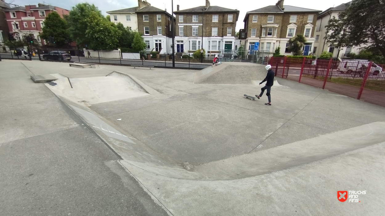 The 2007 reconstruction transformed Cantelowes into one of the premier skateparks in the UK. The design the Cantelocals came up with offers something for everyone – from beginners to seasoned pros. The centerpiece is a sprawling concrete bowl complex, often praised as one of the biggest and best outdoor bowls in Britain. This bowl has multiple sections of varying depth (including a deep end with pool-style coping and a unique “cradle” or clam-shaped over-vertical section), plus hips and roll-in entry points that let skaters flow through different lines. Wrapping around the bowl is an L-shaped street course, which incorporates flat banks, a large banked hip, ledges, manual pads, a rail and other street obstacles. This mix of terrain means the park caters to various styles – riders can carve the bowl, then hop out to hit street lines along the perimeter. The entire park is all concrete, providing a smooth, fast surface (a deliberate choice to avoid the bumpy tarmac and noisy metal ramps that plagued lesser skateparks). Cantelowes also remained free to use and open to BMX riders, inline skaters and scooters as well, keeping with its roots as a community youth facility. Over the years since reopening, minor additions and wear-and-tear have occurred (some ledges are a bit worn now), but overall the park’s layout remains as built in 2007. Importantly, Cantelowes Skatepark has continued to be a focal point for the skateboarding community – a place where young skaters hone their skills and veterans gather to skate for fun. Its combination of historic legacy and top-notch modern design makes it a must-visit spot. In fact, many describe it as “widely recognised as one of the biggest and best” skateparks in London, if not the entire country.