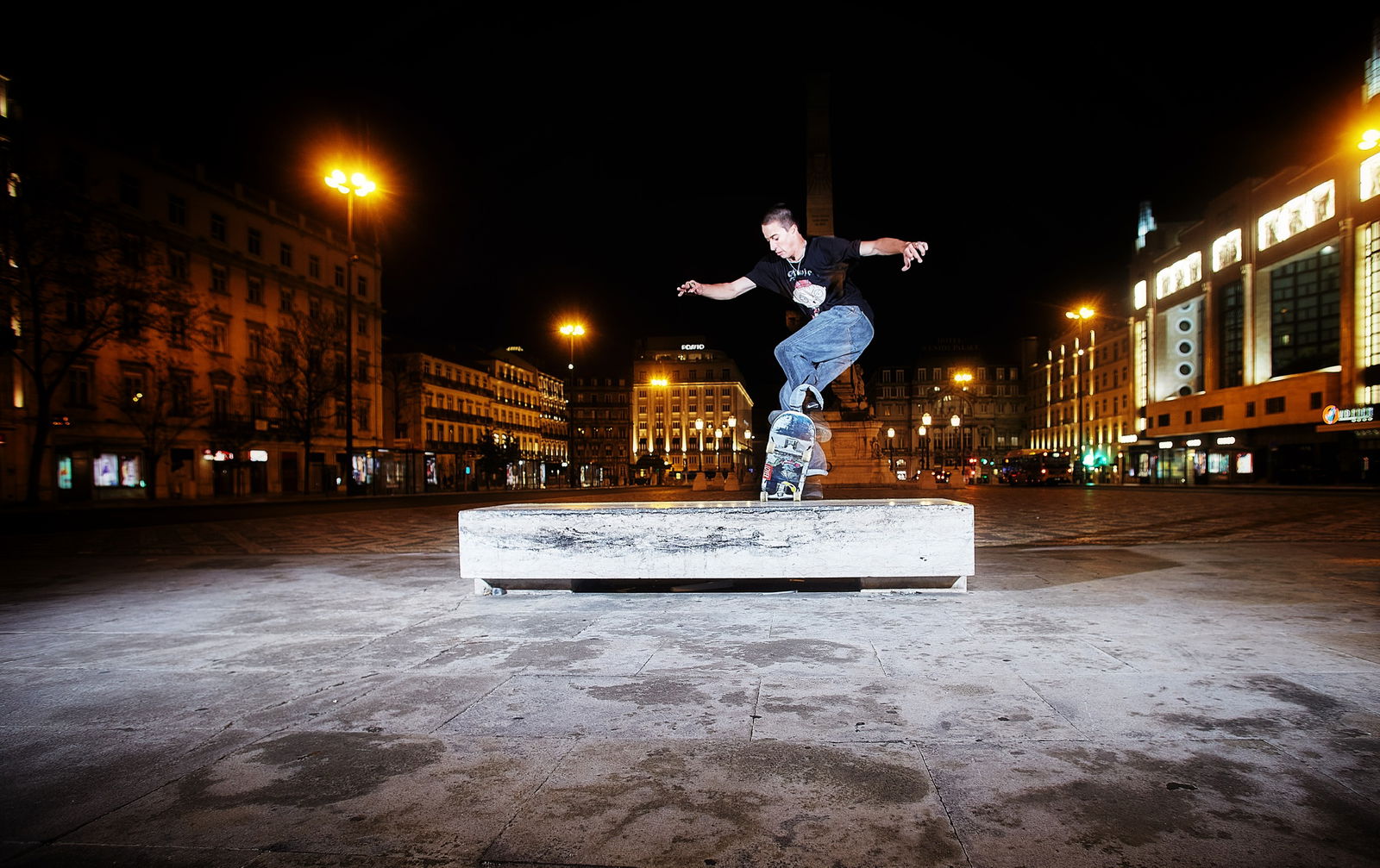 I’ve been a photographer for 27 years. I’ve always made a living from photography, but not just from skateboarding. I’ve been deeply connected to the music world for a long time, especially hip-hop. Back then, there was no internet to watch tutorials on how to use a flash, it was all trial and error. But it was expensive because we used film. Nowadays, you learn from every photo, which is a huge difference. You can instantly go on YouTube to figure out how to work with a flash. And today, even if you can’t afford the latest gear and can only buy a 10-year-old model, you can still have professional-level equipment. You can get a kit for much less money than before. I’m self-taught, I studied Law, but I never studied photography.