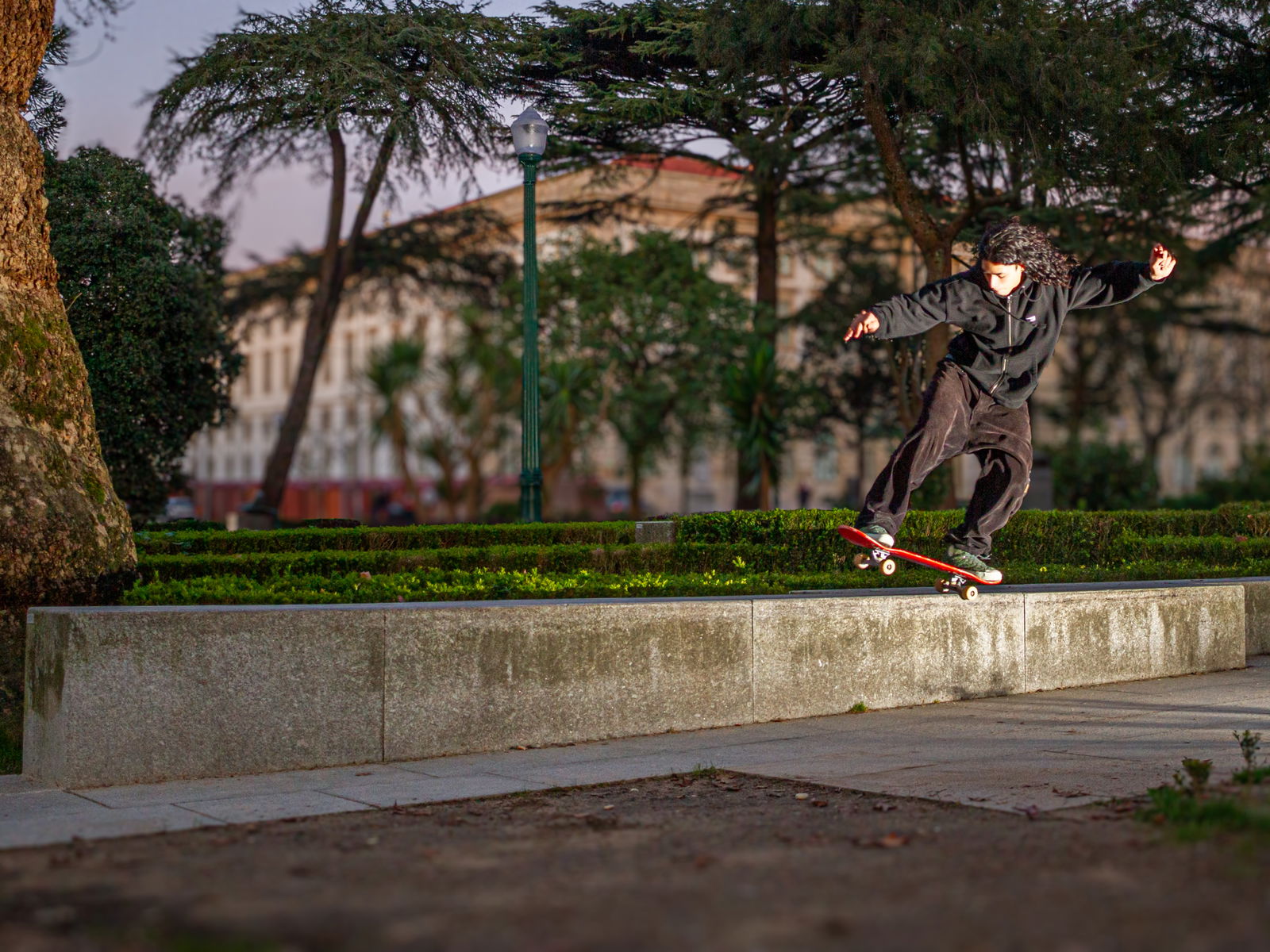 At the age of 46, the body doesn’t let him do all the tricks he wishes he could. So, what’s the best way to stay connected? By taking pictures and displaying his talent, something he started doing eight years ago. Hugo Cruz has crafted his own style, recognized by his peers, and works with some key players in Portuguese skateboarding. Here’s Hugo Cruz, from Póvoa de Varzim.