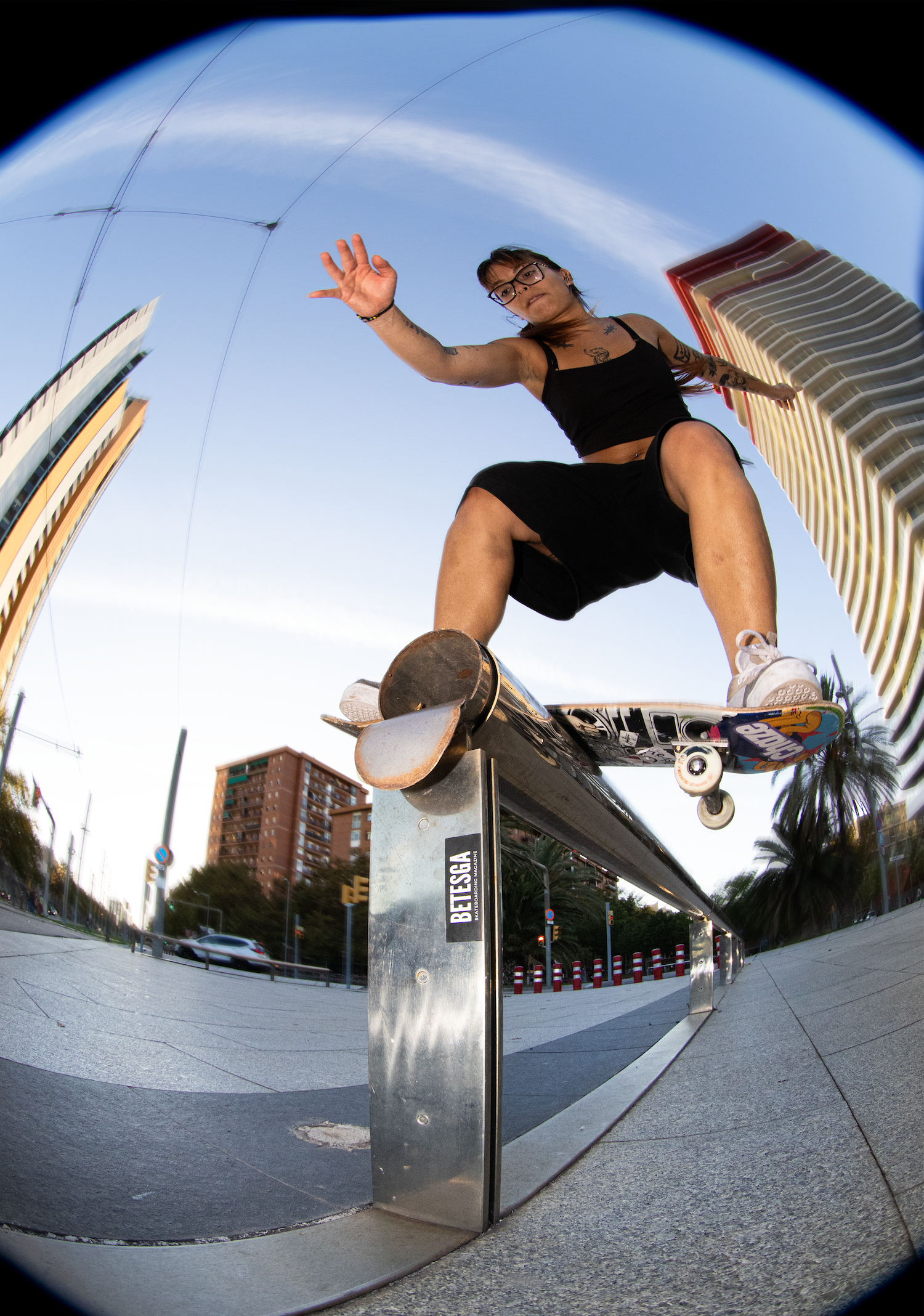 The lack of representation of women in skateboarding and photography. I started street skating in 2019 at 18 years old, and three years later, I began taking photos. I noticed that almost all the images were of men, and photographers had very few pictures of women each one had maybe three or four shots, often of the same skater. So, I founded Betesga Skate Mag, first on Instagram and then in March 2023 as a platform exclusively for female skateboarding. Since there wasn’t much available content, we had to start creating it ourselves. Fortunately, more men photographers are now capturing female skaters, and I believe we have also opened doors with brands for many of them. On a personal level, after learning and experimenting, I think I have developed my own style.