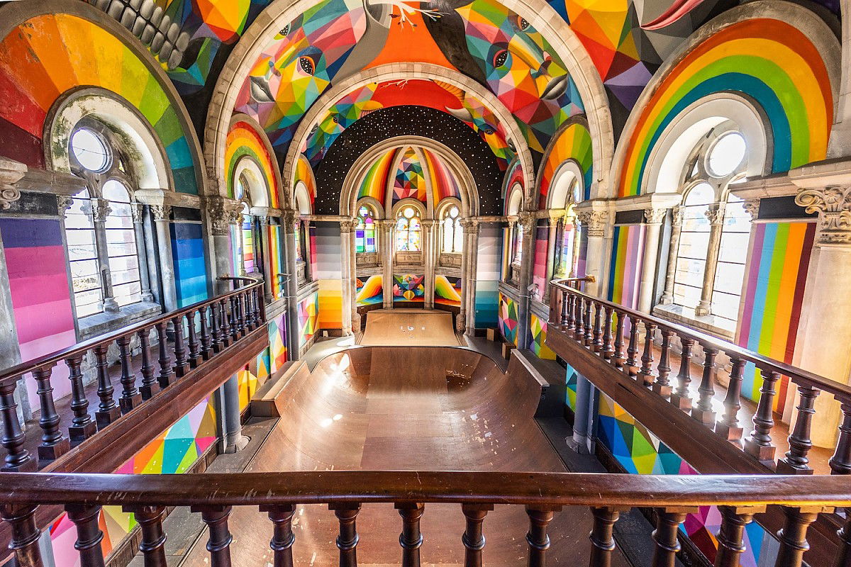 What they said back in the 90’s "Heaven is a Halfpipe"... This park is a stunning place to visit! In 2015 they transformed the 200 years old abandoned church into a skaters dream. It’s not just a miniramp in a church. It's the colorful graffiti artwork by Okuda that is breathtaking and makes this place worth a vist. My advise... take your time to check it closely if you are there! The open Bowl/Miniramp had it’s best days cause the surface of the ramp has some holes and cracks (Oct 2021) but it’s a well built ramp and loads of fun. A handful people just travel to that place to take some shots, so most of the time there are no skaters and you’re kind of „alone". An old Lady (the wife of the original owner of the church) opened the doors for us, she just speaks spanish, but she is a lovely soul and really liked to see us skating in that place. The entree for the church is free but we decided to donate 15€ to keep that place alive and hope that some day the ramps get a new surface. Copy and paste to keep such places alive!