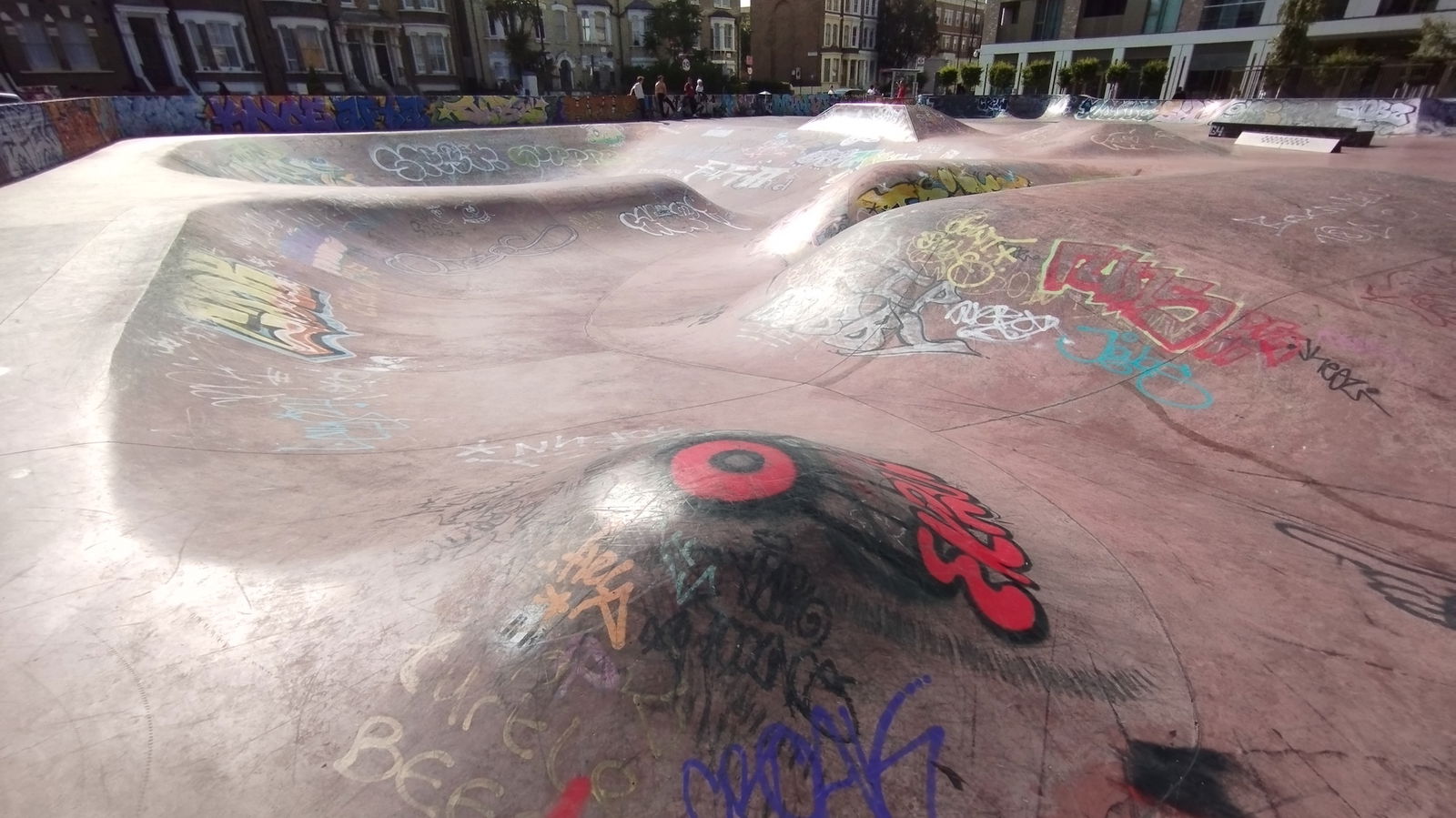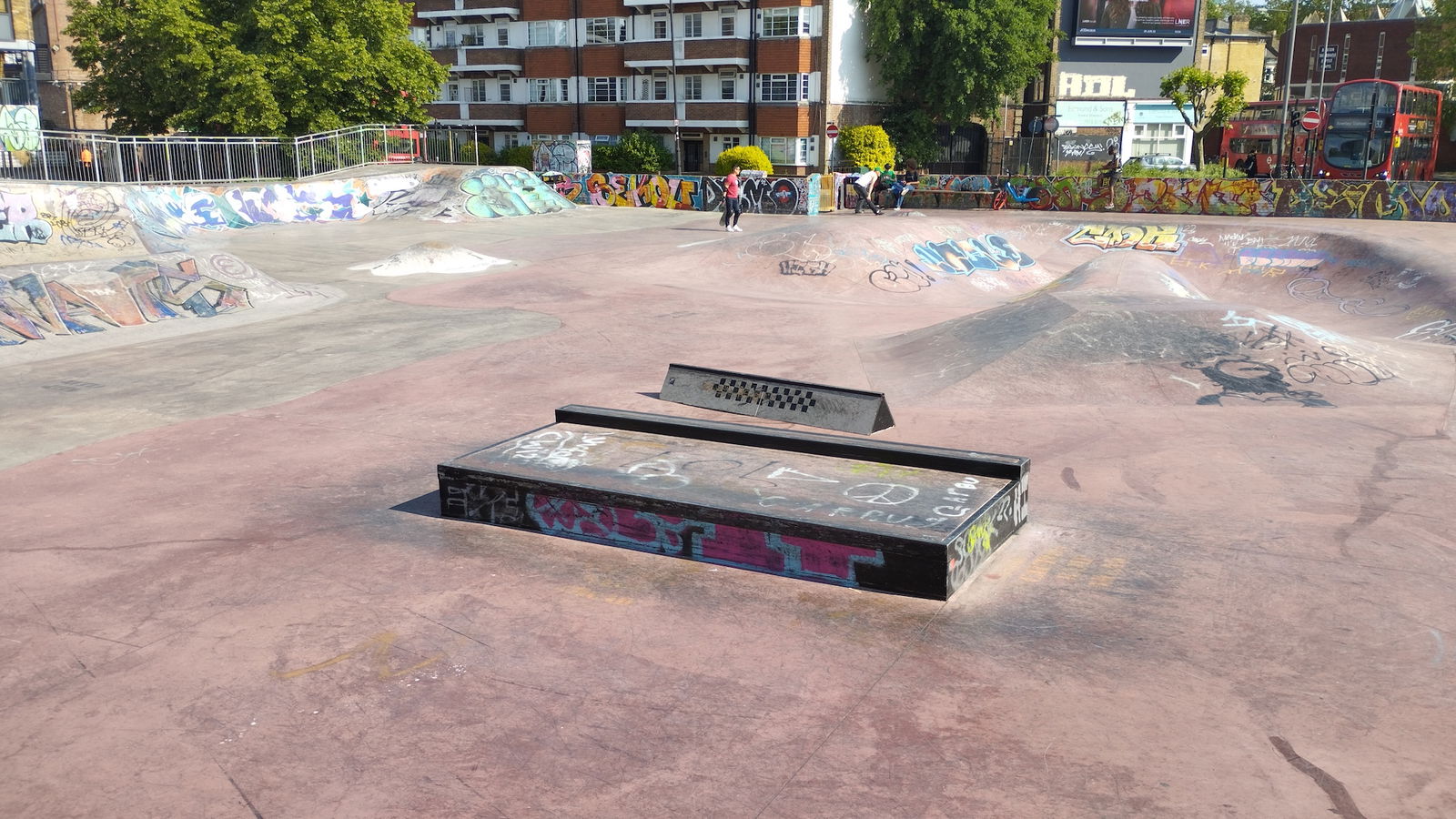 Stockwell isn’t your standard skatepark with ledges, rails, and perfect transitions. Instead, it’s an organic, free-flowing landscape designed by Lorne Edwards, the same dude who built the first UK skatepark in Portland, Dorset. The park has a huge snake run, tons of bumps, and a new bowled corner with coping, making it a dream for transition skaters. The fresh quarter pipe along the northern wall adds even more ways to keep your lines going.