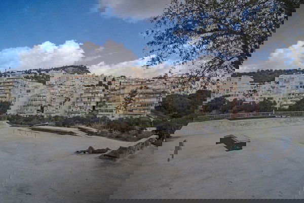 Our mission was to skate Apelação skatepark, but like you could see in our prior blog the skatepark wasn't in any skating condition. So we decided to head up to the bowl in Vila Franca de Xira instead. By accident we (I) got on the Vasco da Gama bridge and that is a bit of a f#ck up because it's the longest bridge in Europe. So basically it was a detour of about 34 kilometers if I wanted to turn back. So we decided to check out some parks on the other side of the Tejo. When we arrived at the park in Samora Correia we couldn't believe our eyes. A total disaster of a park. Basically the city hall handed it over to an architect who probably never built a skatepark before and who decided to pack it with unskateble rails and stairs. So we got back in the car and found ourselves on the way to the third skatepark of the day in Vila Franca de Xira. It was our first time here and it's definitely skateable but nothing super exciting so in the end we got back in the car and drove to the Forte da Casa bowl in Franca de Xira.