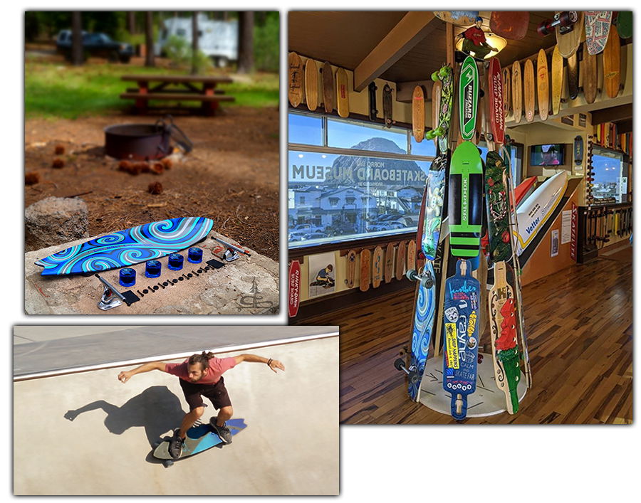 I have always been drawn to the chill cruising aspect of longboarding far distances. With the right longboard I feel like I'm surfing the cement. I like a bamboo/fiberglass longboard, because of the flexible material that really adds to the experience while carving and pumping. It wasn't until my wife and I started living on the road full time in 2017 that I began taking my longboard into the skateparks. As we travel, we see so many great skateparks. Before my experiences, I didn't think skateparks could be as big as they are or have such a good flow on a longboard. Many big vert skateparks with smooth transitions are great for longboarding and make for some perfect cement surfing!