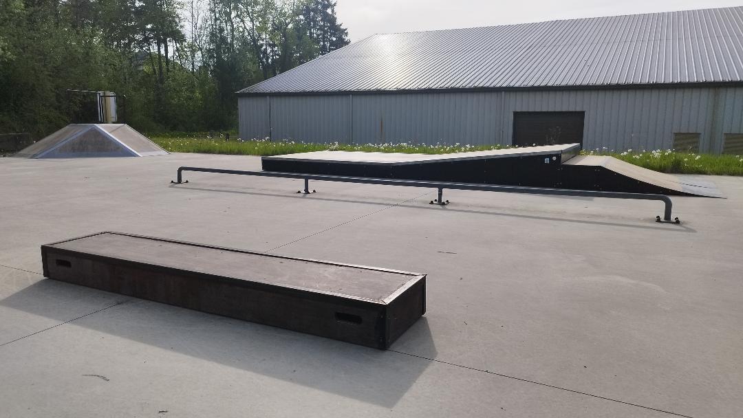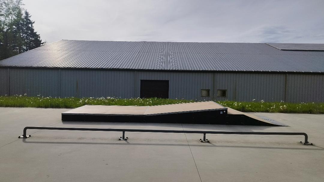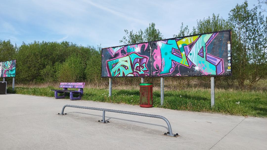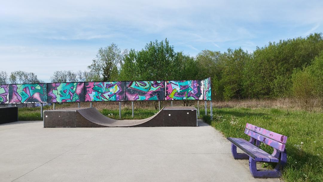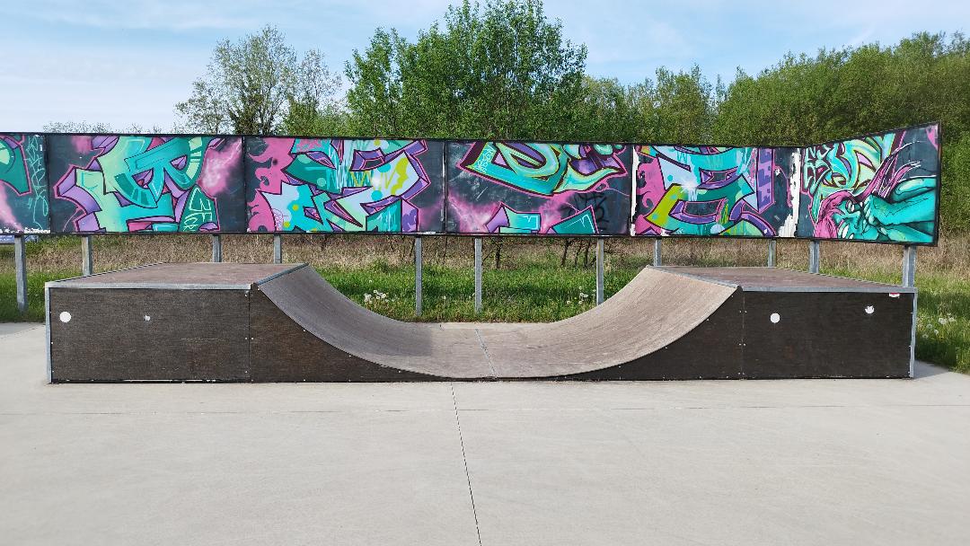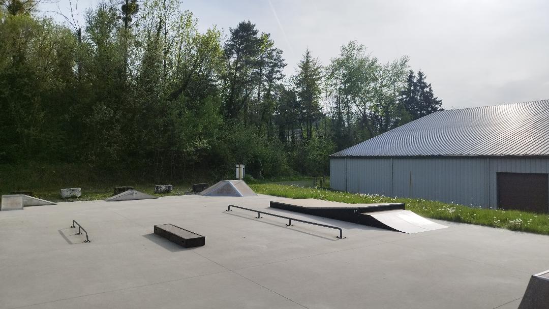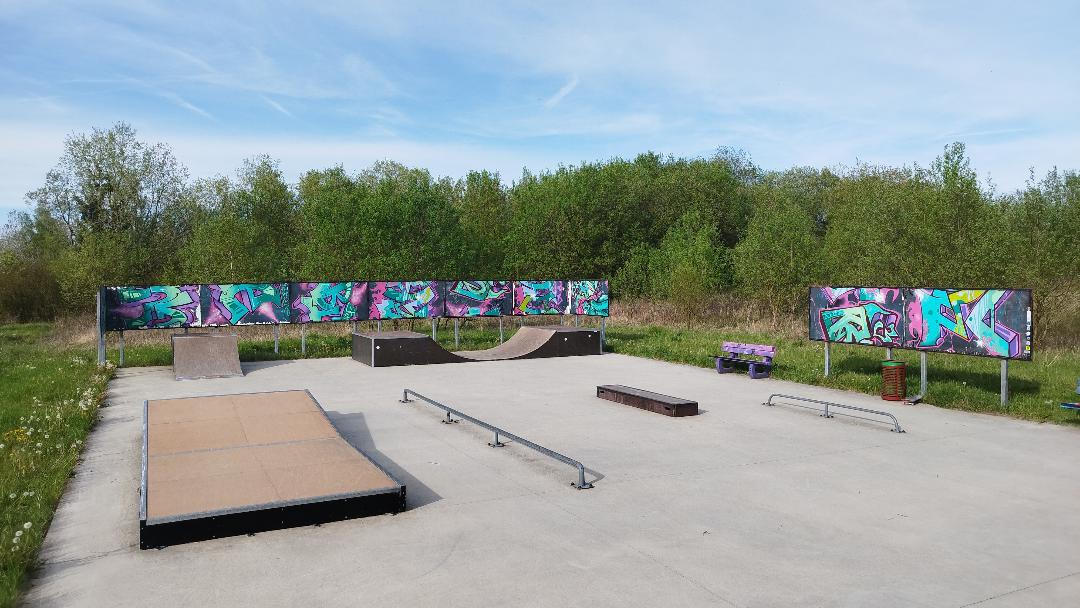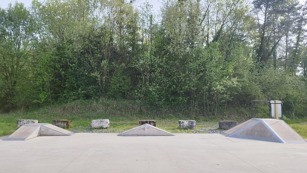 Halanzy skatepark is a modular park with several basic obstacles and a miniramp.